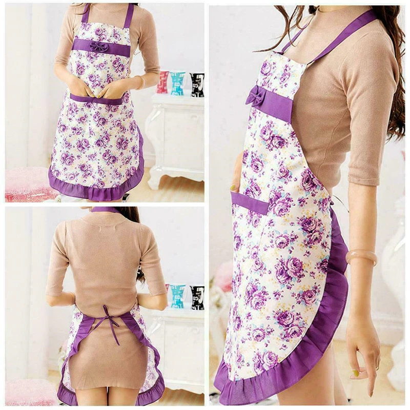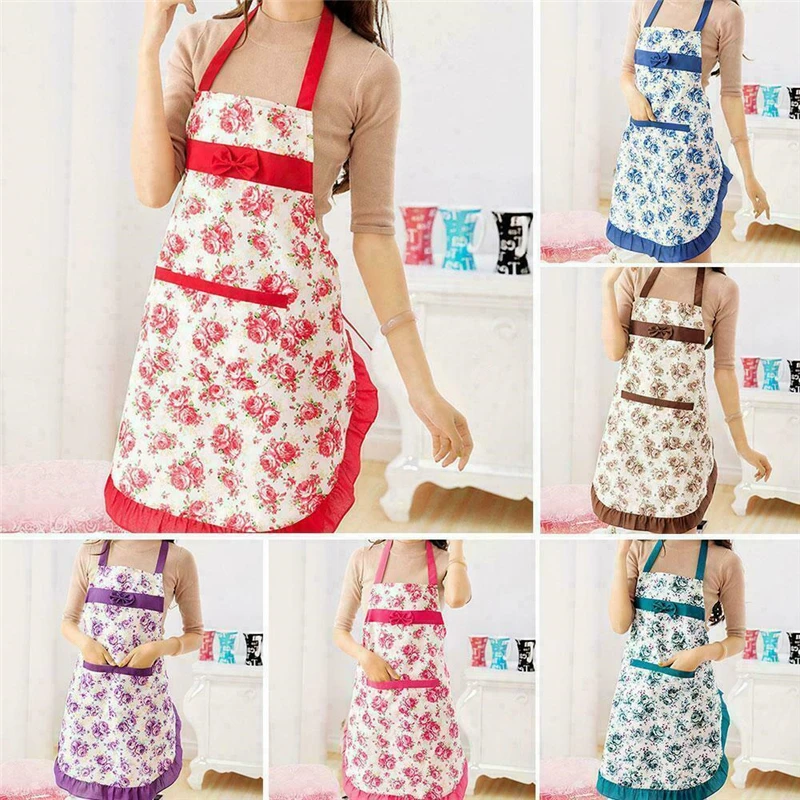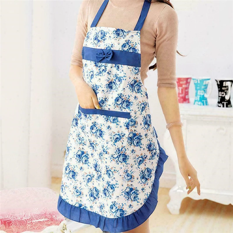 Фартук женский с бантом и цветочным узором, для взрослых, для дома, кулинарии, выпечки, кофейни, уборки, кухонные принадлежности
