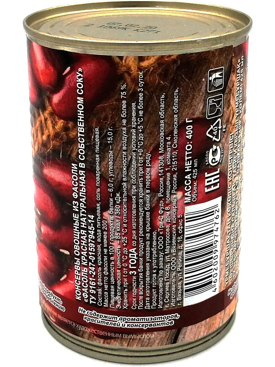 Фасоль красная, вода питьевая, соль поваренная пищевая.