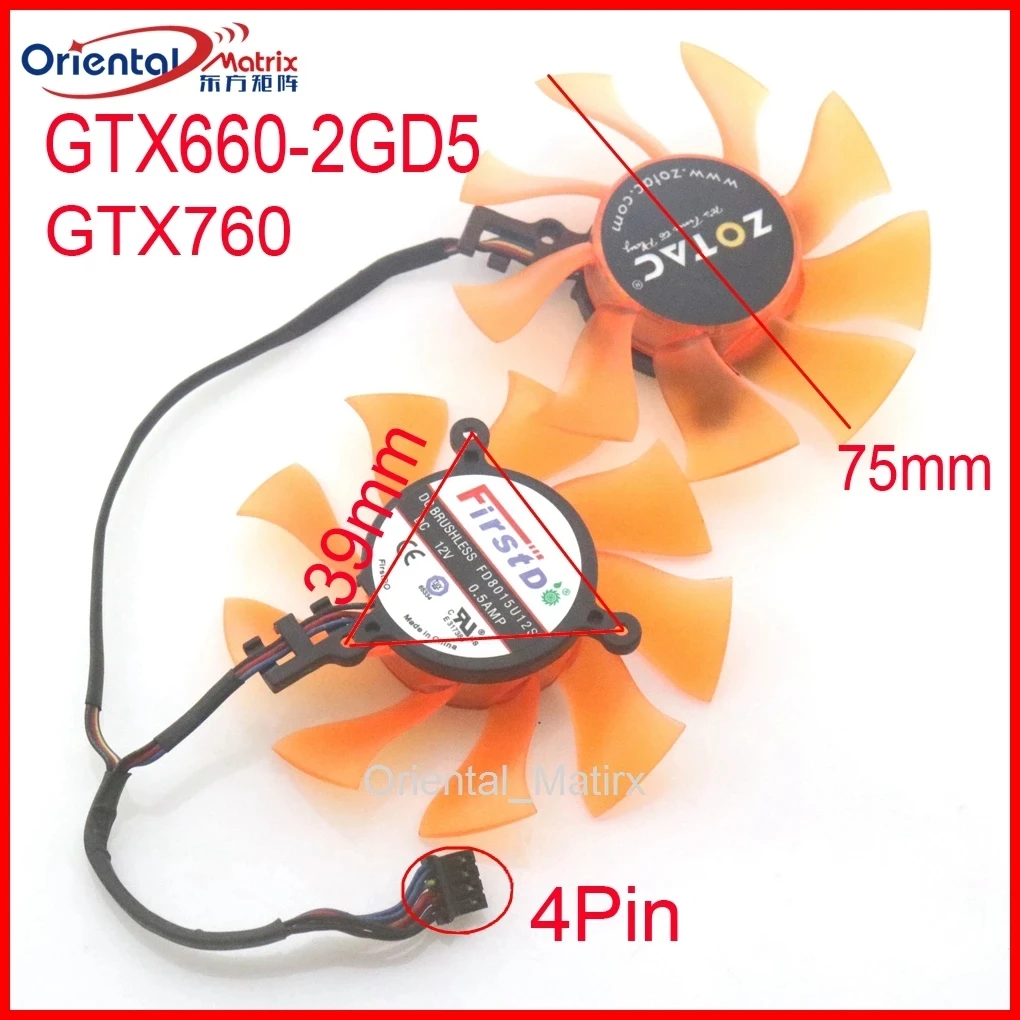 • 1 пара FD8015U12S 75 мм DC12V 0,5 ампер для ZOTAC GTX660-2GD5 GTX670 вентилятор Охлаждения видеокарты 4Pin