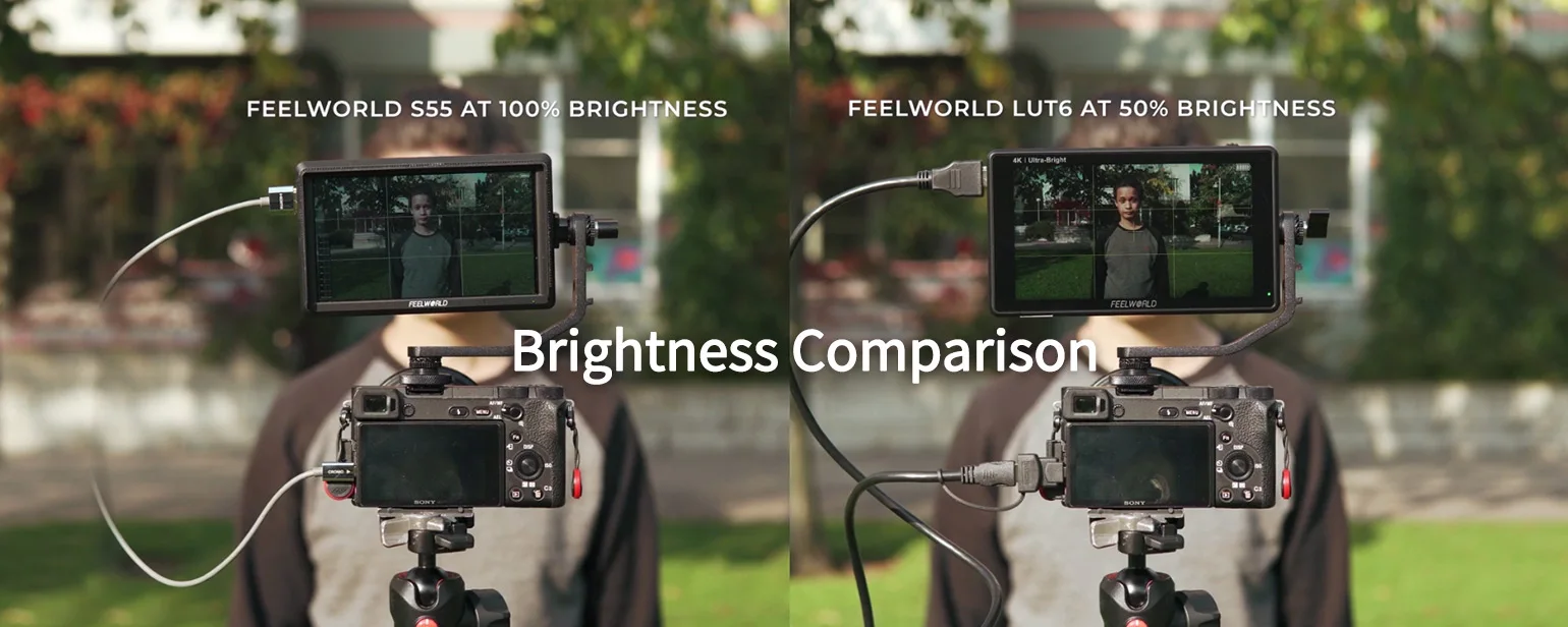 Полностью регулируемый Экран 2600 нит невероятно яркий, что делает его идеальным для съемки в помещении или вне помещения. Яркий Экран 2600 нит почти в 5 раз превышает яркость обычных полевых мониторов, позволяет снимать на открытом воздухе без отражения вымывания изображения. Это позволяет легко видеть на открытом воздухе без капюшона, что делает его легким для наружной съемки при ярком дневном свете!