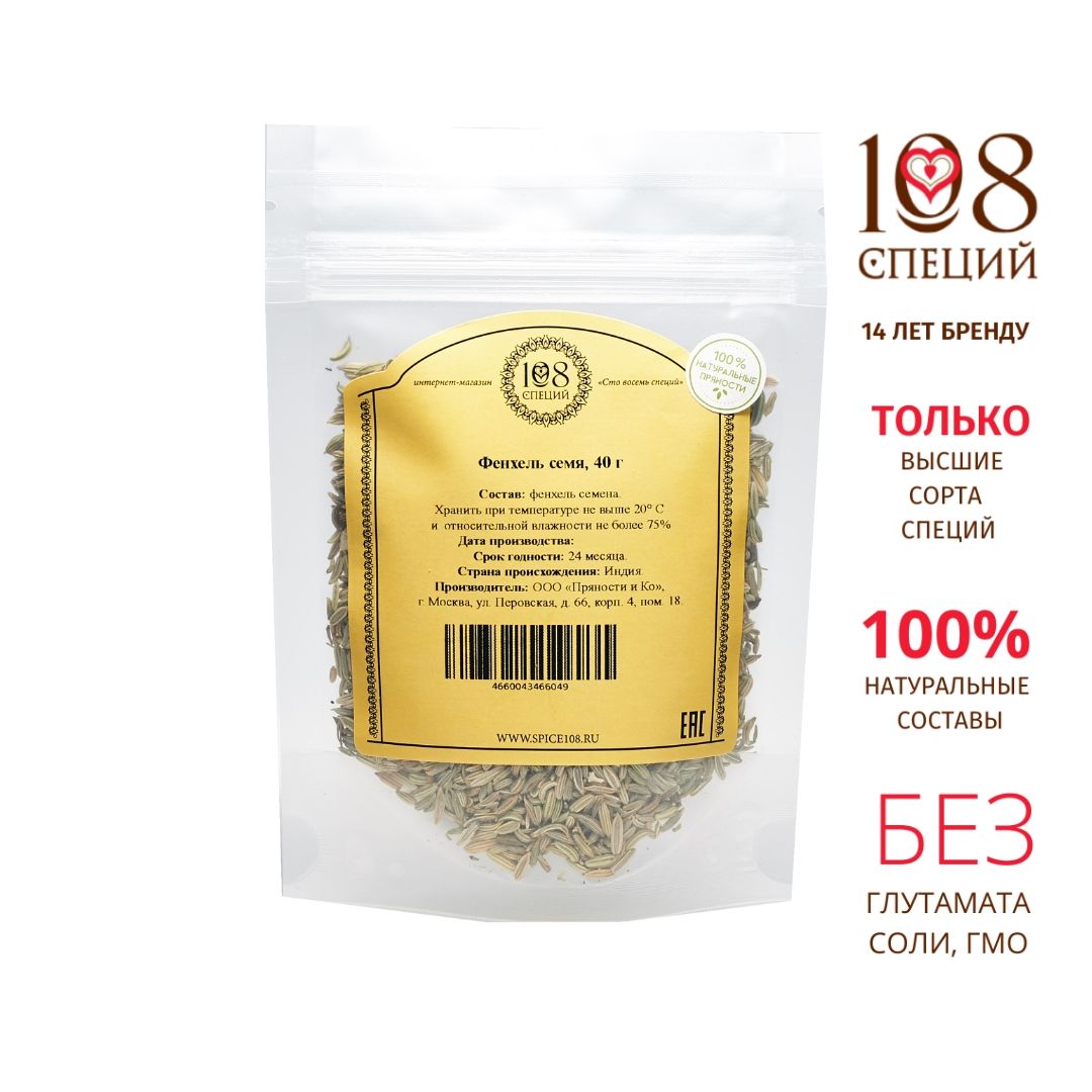 Фенхель семена высший сорт 108 специй дой-пак, 40 г, специя для детского чая, приправа для салатов, для женщин, для лактации, для свежего дыхания