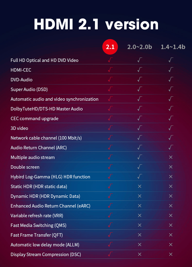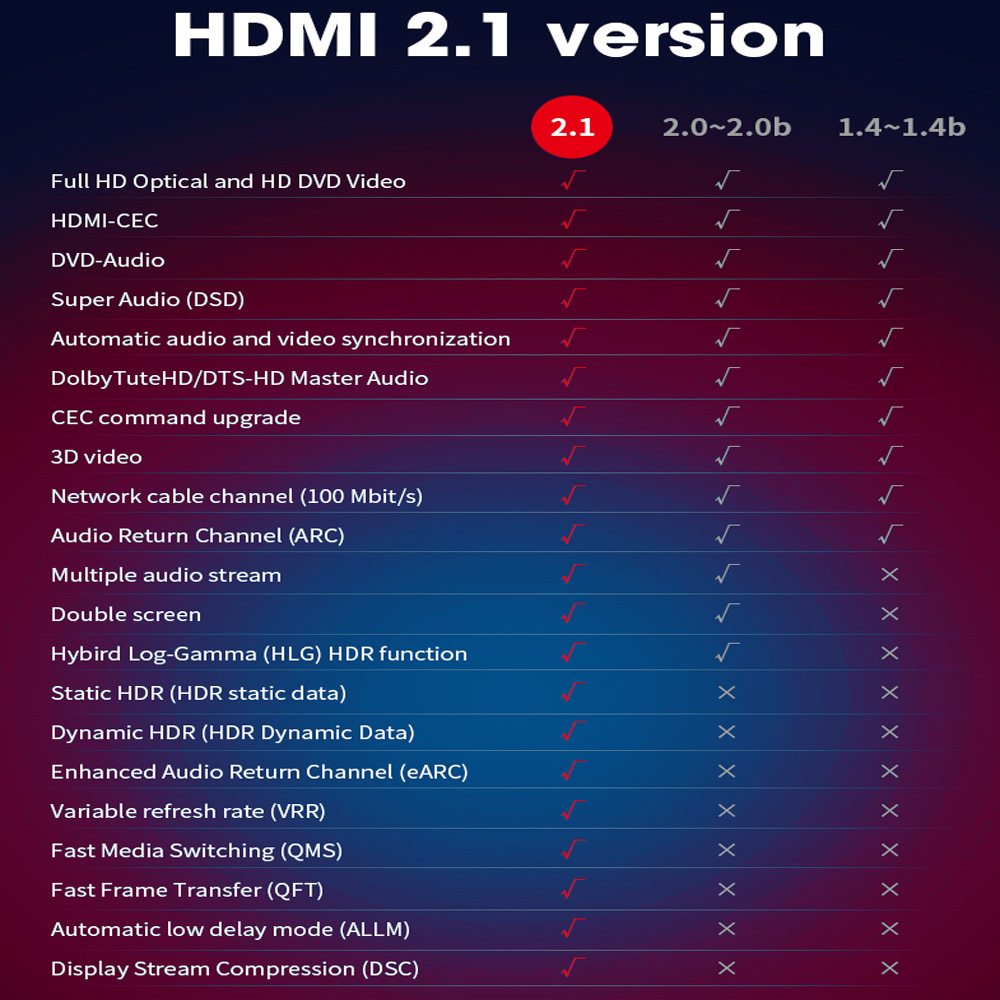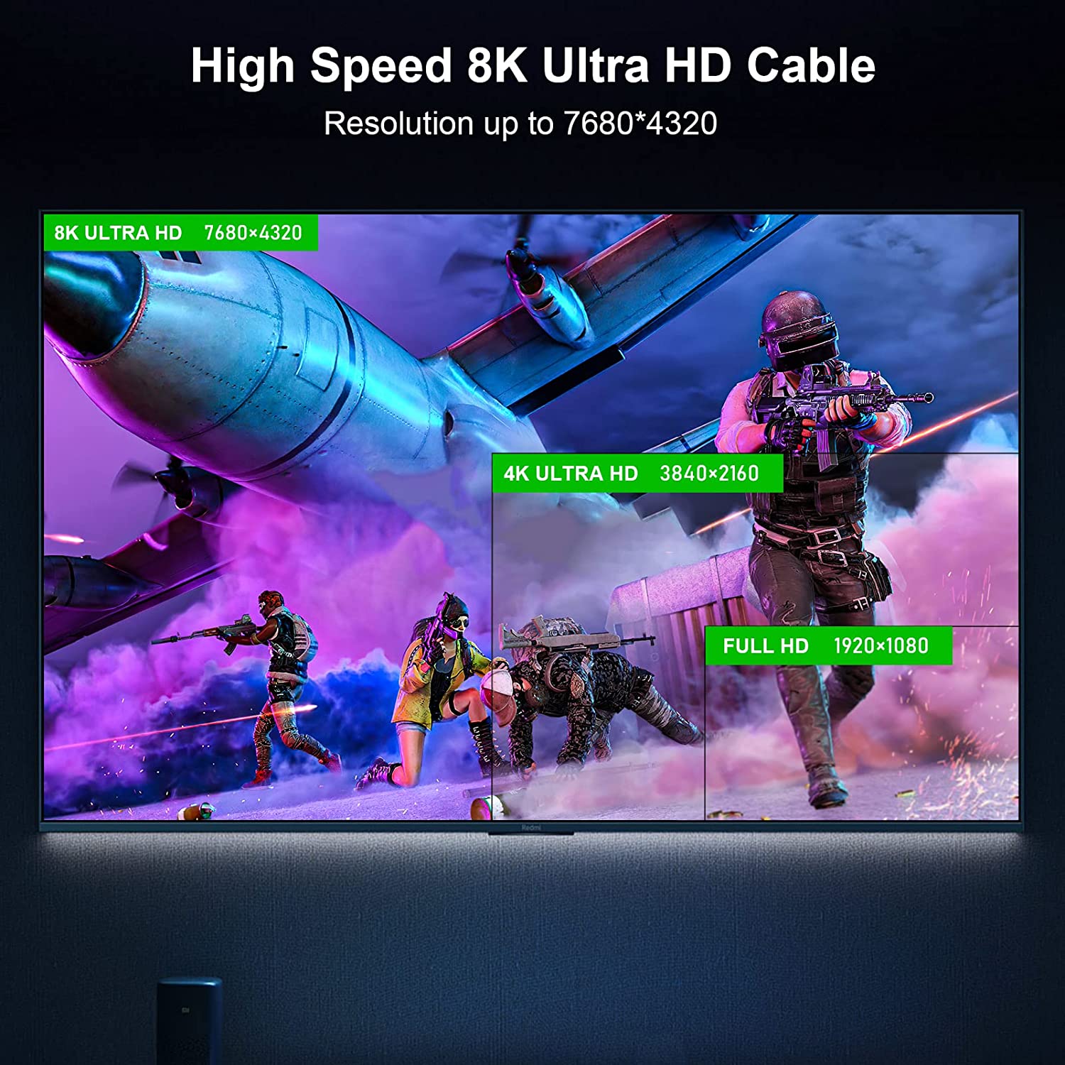 【 Разрешение 8K 】 кабели HDMI 8K поддерживают разрешение и скорость обновления до 8K @ 60Hz и 4K @ 120Hz/144Hz. С 8K HDMI динамическая HDR и 12-разрядный технология обработки, вы обеспечиваете, со сверхвысоким разрешением Ultra HD, кинотеатр и 3D визуальные эффекты. Он также совместим с версией HDMI 2.0b/2.0a/1,4/1,3/1,2/1,1.