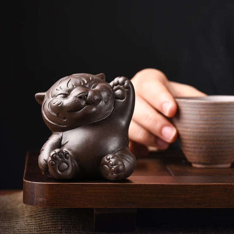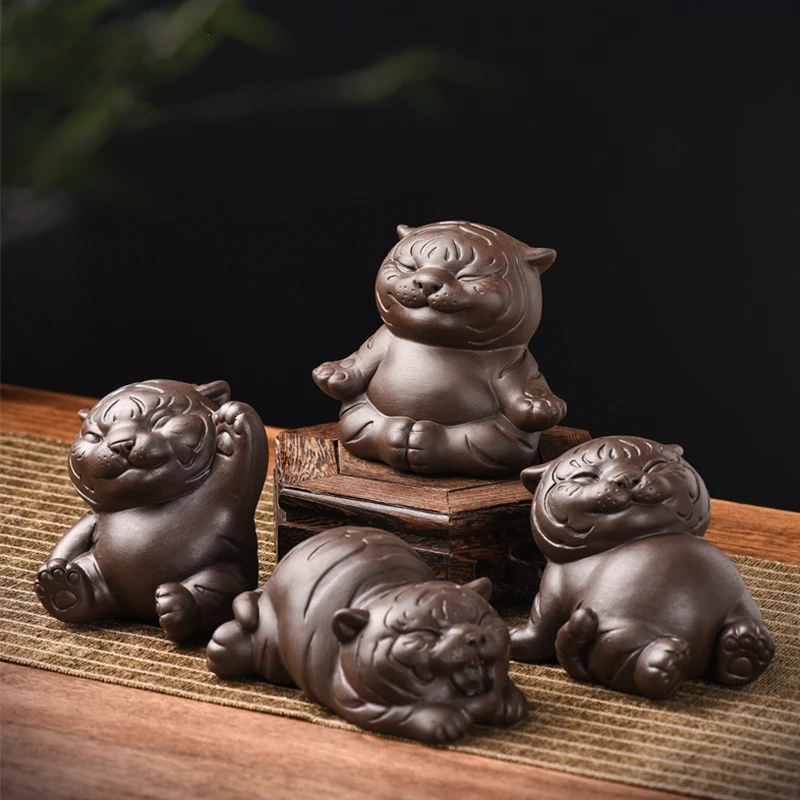 Фигурка чайного питомца из фиолетовой глины в виде тигра и кунг-фу, аксессуары для чайной церемонии, домашние украшения ручной работы