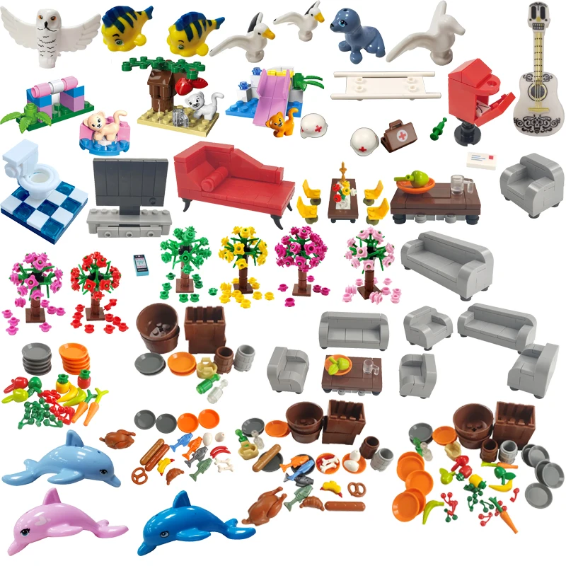 Фигурки с замком, животные, дельфин, Чайка, украшение для комнаты, строительные блоки, развивающие игрушки, подарки для детей, фигурка друга, модель