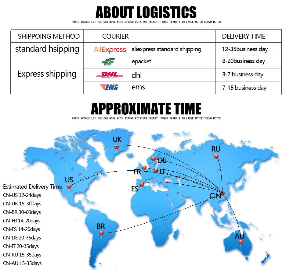 1.Ваш Заказ обычно будет отправлен в течение 2-5 рабочих дней после подтверждения оплаты (исключая наши выходные и праздничные дни). Если он встретился с нашим Новым годом, пожалуйста, Продлите время доставки.