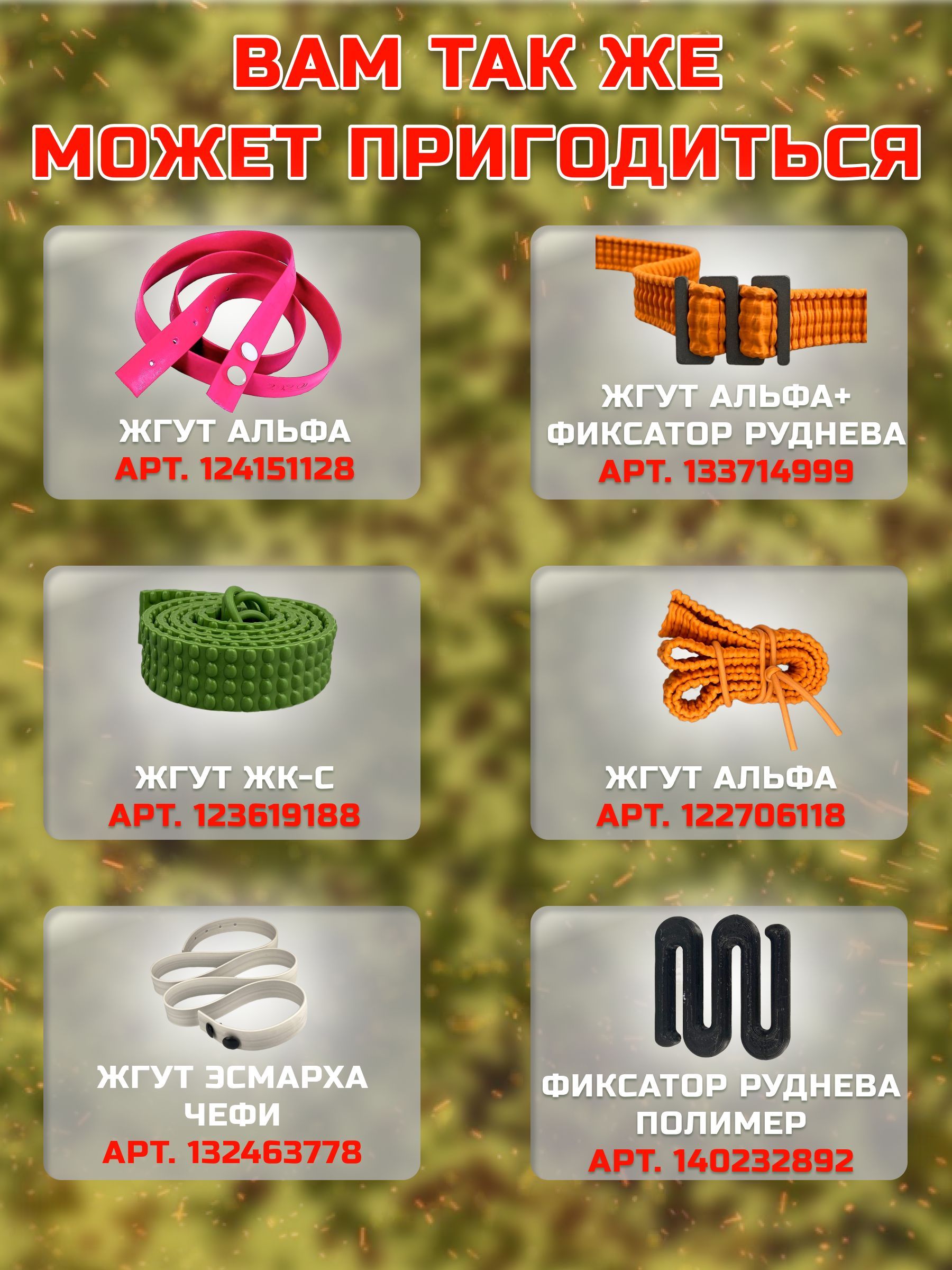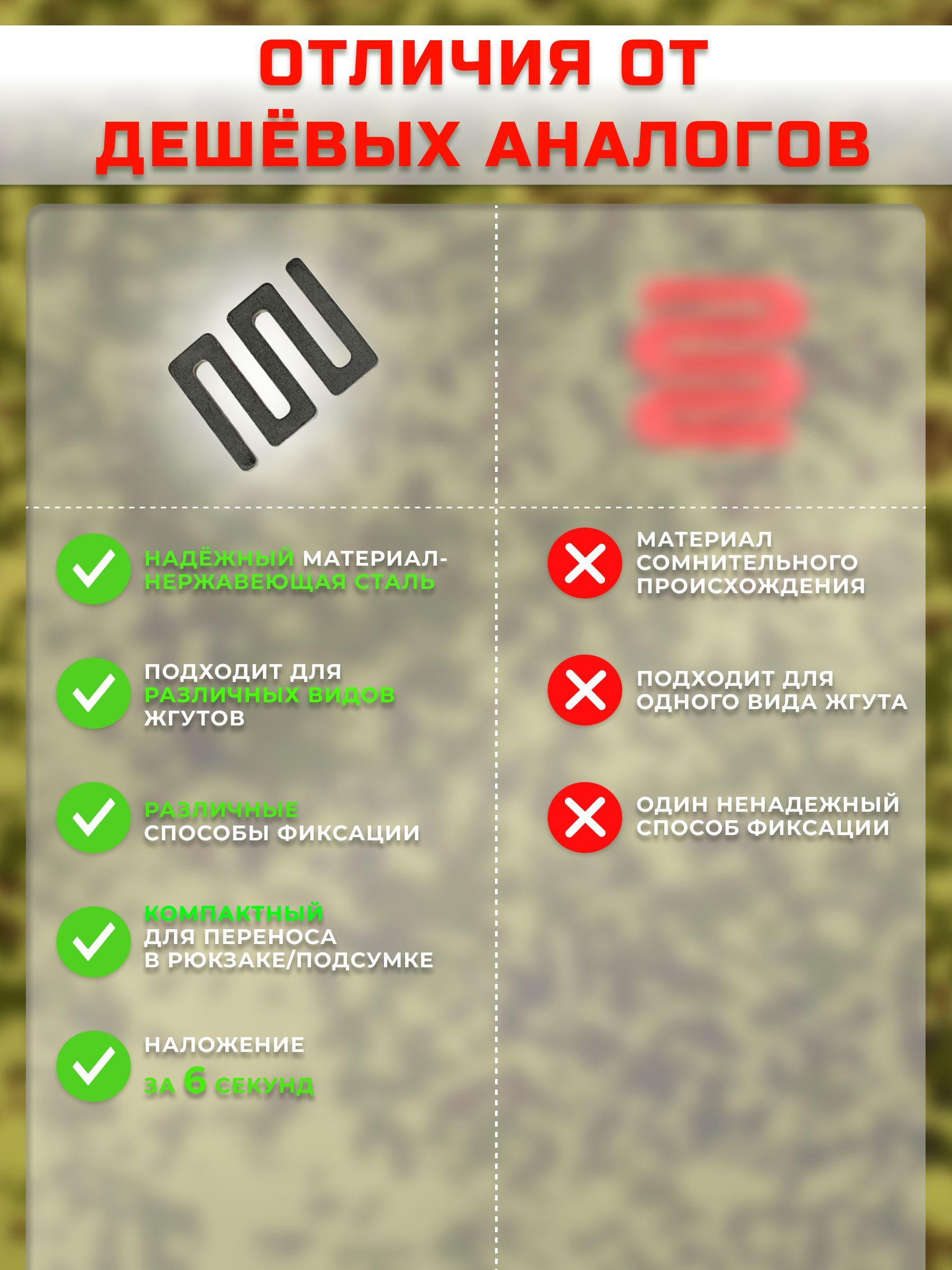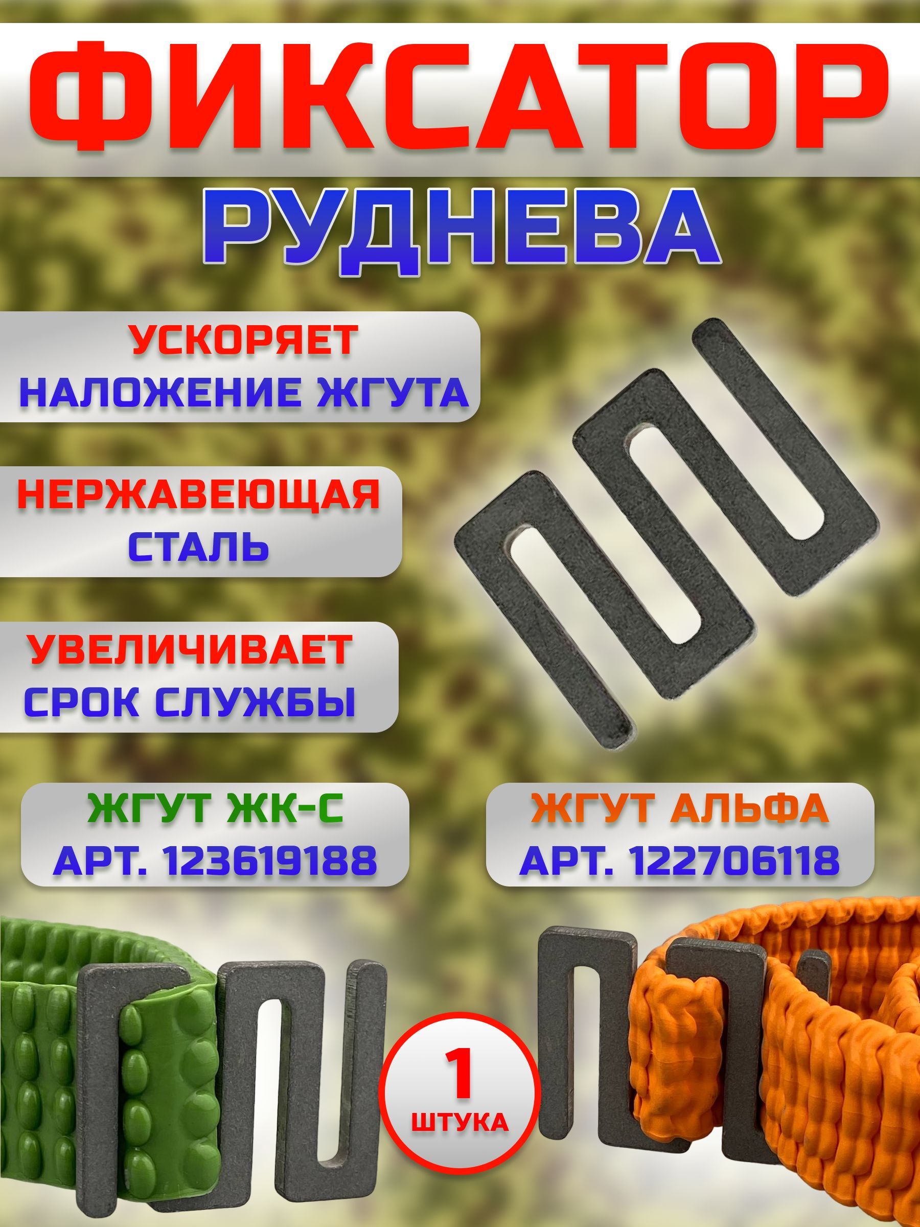 Описание: Замыкатель Руднева для жгута медицинского кровоостанавливающего Альфа- это изделие предназначено для плотной фиксации кровоостанавливающего жгута на поврежденной конечности и сокращения времени наложеня до 3-5 сек! Фиксатор представляет собой открытую пряжку с несколькими прорезями для закрепления перевязочного жгута. Для перевязки каждый край жгута продевается в прорезь скобы с краю и таким образом фиксируется замыкателем. Кроме такого способа крепления можно использовать и другой – первый конец жгута крепится в средние прорези петли и второй устанавливается в крайние. Этот способ позволит лучше сохранить изделие и продлит срок его службы используется для временной остановки венозного или артериального кровотечения на верхних и нижних конечностях. Кроме того, его можно использовать при синдроме сдавливания в качестве защитных жгутов, а также при отёке лёгких – в качестве турникетных жгутов. Крепление для жгутов рассчитано на многократное использованияе, после дезинфекции. Не подразумевает наличия срока годности! (от 5 лет) Жгут кровоостанавливающий предназначен для временной остановки кровотечения; нестерилен, изготовлен из резины, имеет застежку в виде петли. Хранить на расстоянии не менее 1 м от нагревательных приборов и избегать попадания прямых солнечных лучей. Применяется при артериальных кровотечениях конечностей, отеках легких для "бескровного кровопускания", защитных жгутов при синдромах сдавливания. Предназначен для использования при артериальных кровотечениях из верхних и нижних конечностей, при синдроме сдавливания - в качестве защитных жгутов, при отеке легких – в качестве турникетных жгутов для " бескровного кровопускания". Перед применением следует протереть марлевым тампоном, смоченным в 3%-ном растворе перекиси или салфеткой антисептической апполо 13*18, затем промыть проточной водой. ОСОБЕННОСТИ: -вертикальные валики сохраняют целостность нервных пучков и трофики кожи на месте пережатия;возможность фиксации даже одной рукой;легко моется от грязи и крови;можно накладывать на голую кожу;максимальная фиксация жгута при наложении первого тура;минимальное время наложения жгута;жгут быстро и легко накладывается и легко снимается (норматив около 10 секунд);имеет удобную застежку в виде резиновой петли;жгут кровоостанавливающий рифленый «Альфа» не теряет форму при многоразовом использовании и стоек к многократным дезинфекциям. В условиях эксплуатации нетоксичен и не вызывает местнораздражающих или аллергических эффектов.
