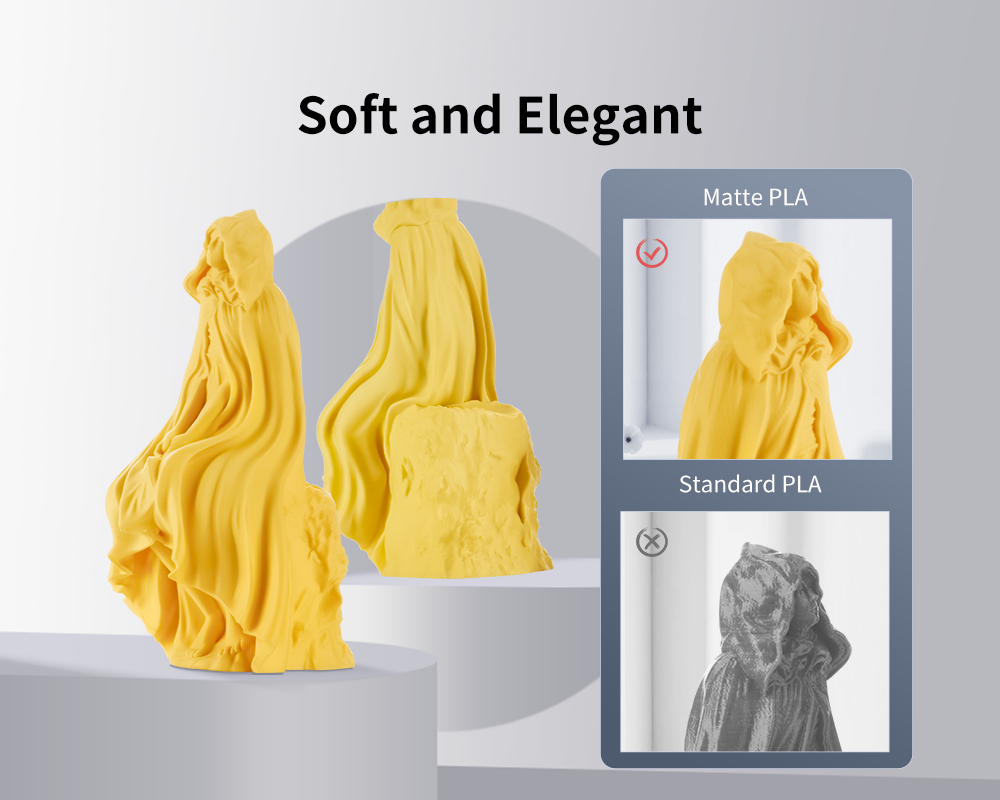 Matte texture with fewer visible layer lines provides with soft touch and elegance . Macaron color enhances the prints' quality with higher level of detail.
