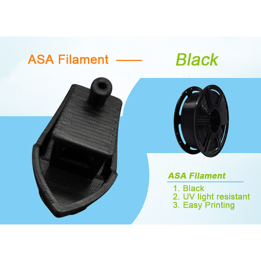 ASA-это функциональный пластик одного типа, параметры печати которого похожи на ABS, но лучше устойчивость к ультрафиолетовому излучению.
