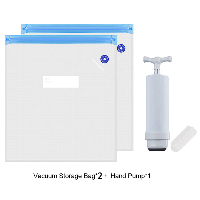 2 мешка 1 насос: вакуумный пакет для хранения * 2 + ручной насос * 1 + уплотнительный зажим * 1;