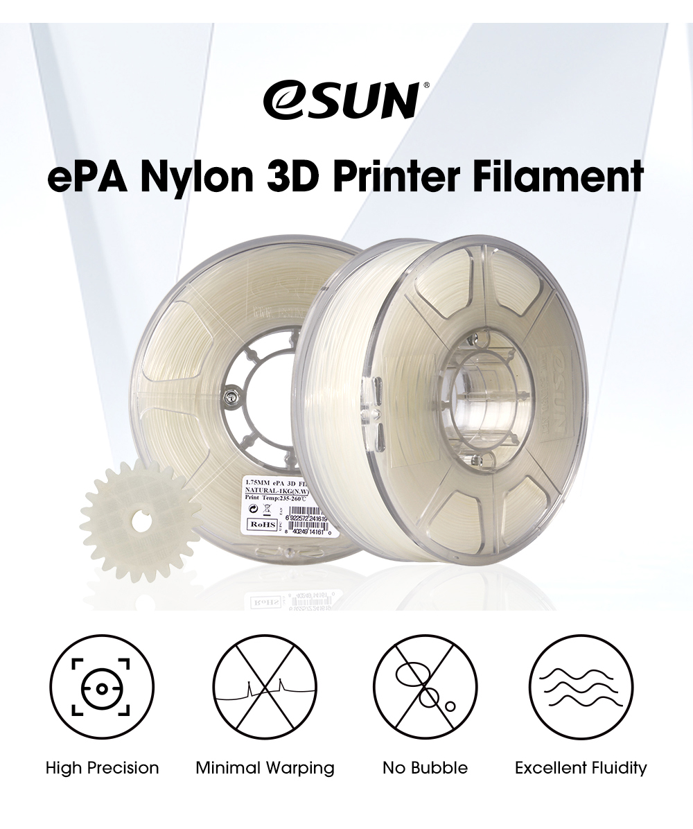 【Герметичная вакуумная упаковка】 Вес нетто: 1 кг. Нить eSUN поставляется в герметичном вакуумном пакете с мешком с осушителем, чтобы она оставалась сухой и не допускала попадания пыли и посторонних частиц, предотвращала заклинивание сопел и давала гладкие 3D-модели.