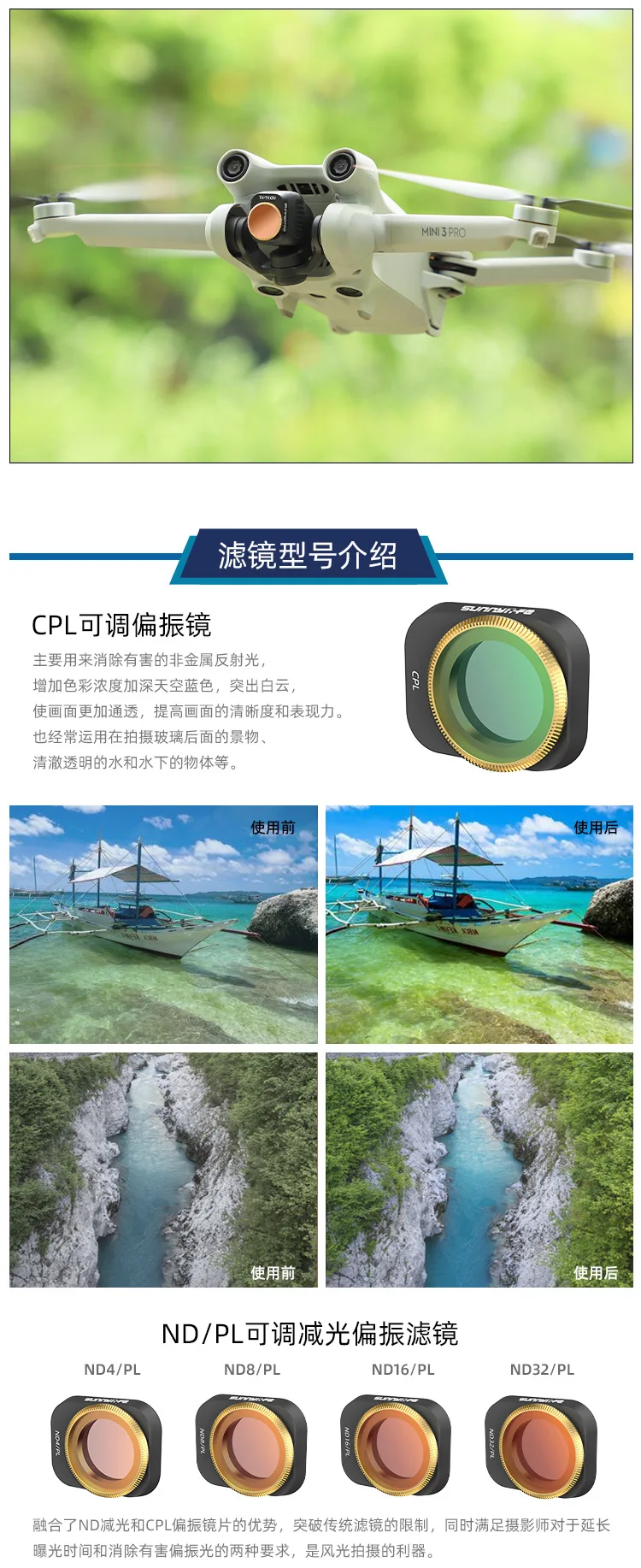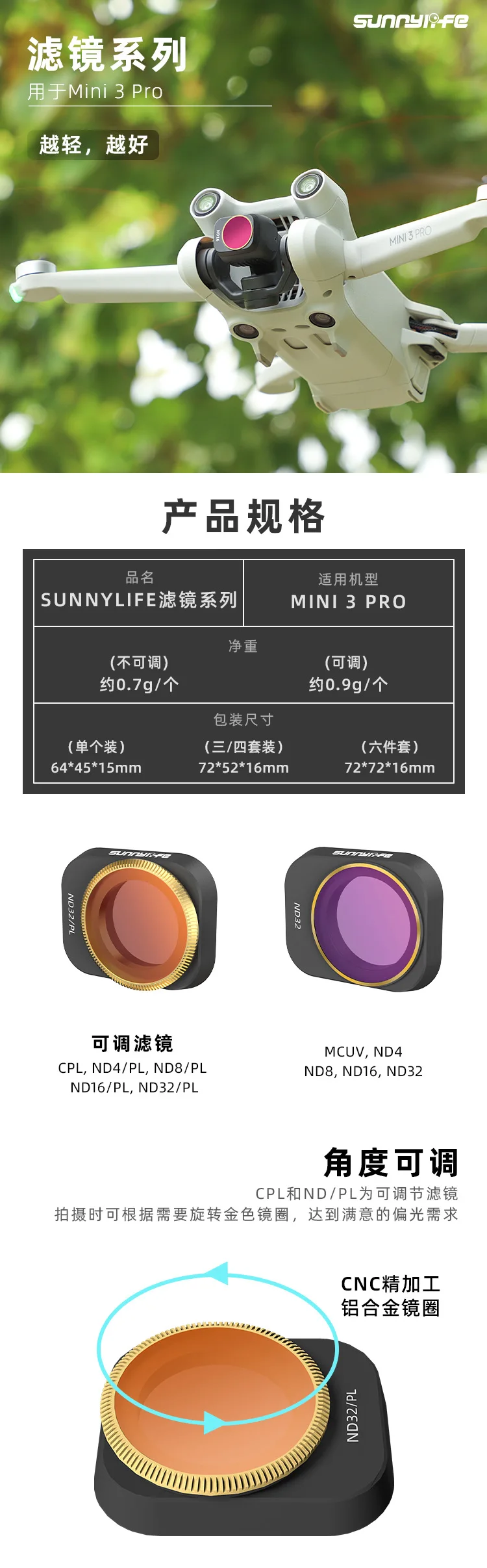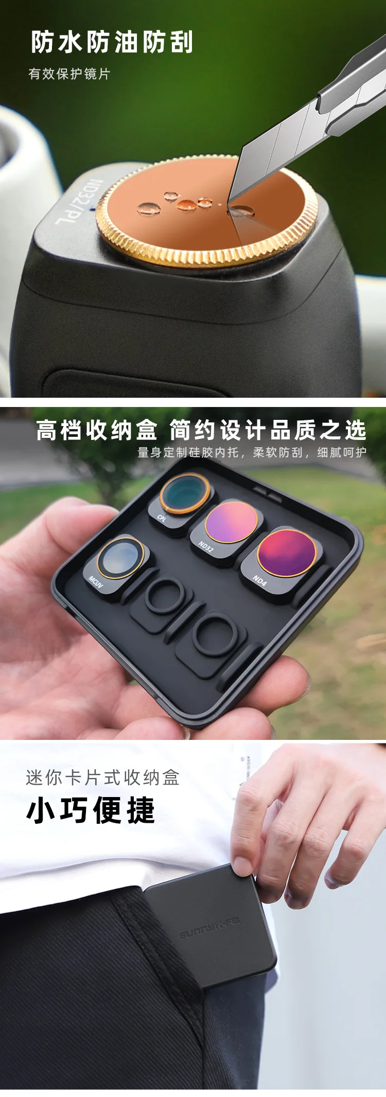 CPL и ND/PL-регулируемые фильтры. При съемке вы можете вращать золотую оправу по мере необходимости в соответствии с требованиями поляризации.