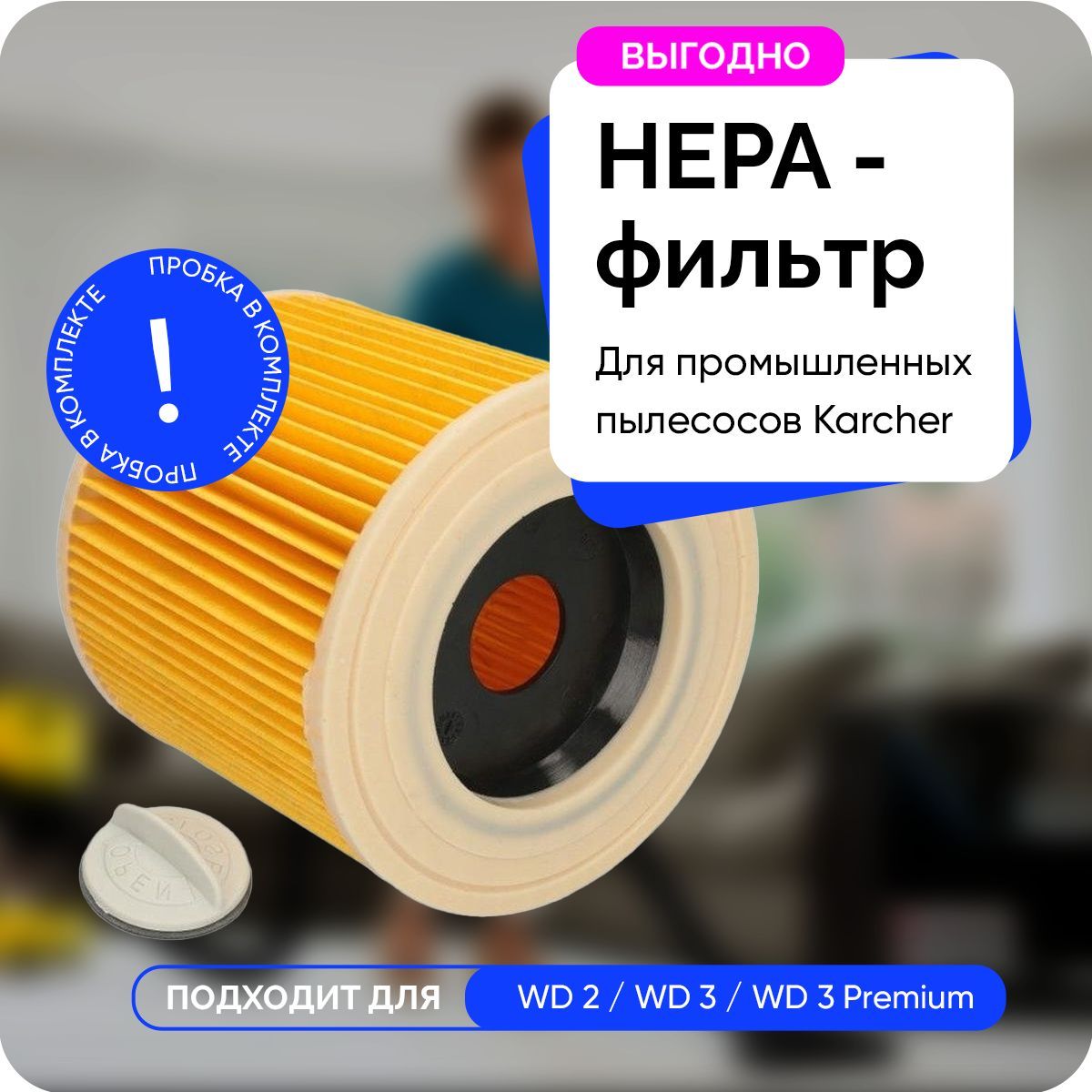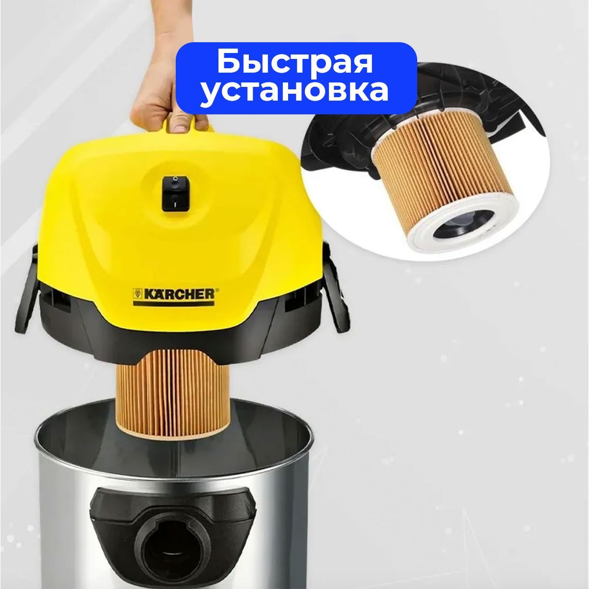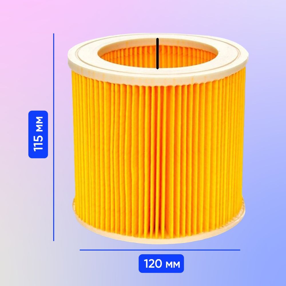 Легкая заменаНаслаждайтесь чистым воздухом в своем доме! А с легкой заменой в два счета - справится даже ребенок Совместимость Фильтры совместимы с большинством современных  пылесосов Karcher. РазмерыВысота: 115 мм, Диаметр: 120ммВыбирайте и другие товарыв Kosatka.shopДиспенсер для крупКод товара: 920732140Органайзер для кухниКод товара: 920733974Салфетки из миркофибрыКод товара: 903959639