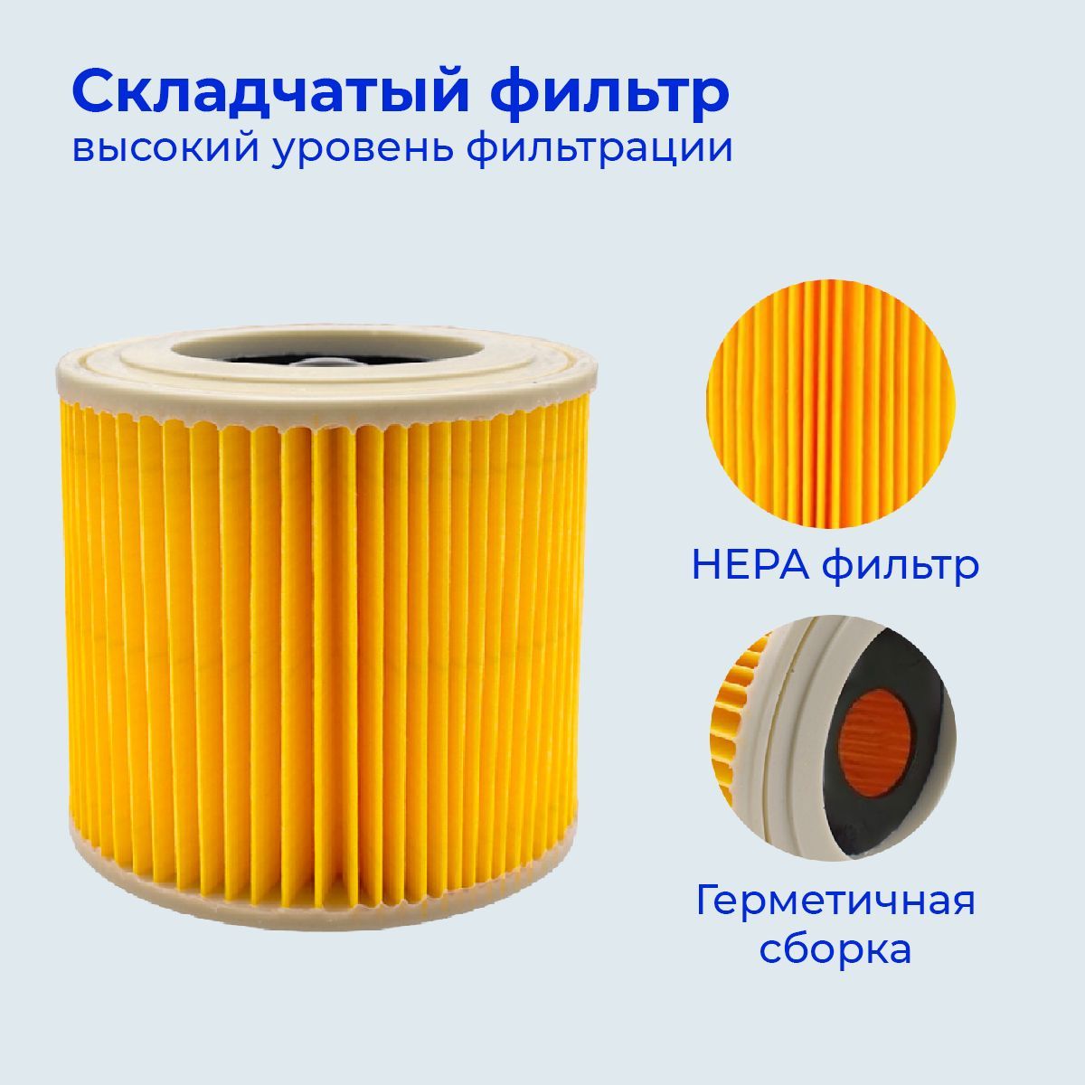 Описание: HEPA Фильтрдля пылесоса KarcherХотите, чтобы ваш пылесос всегда работал на максимальной производительности? Тогда вам точно нужен новый HEPA фильтр!Высокая эффективностьСрок службы этих фильтров составляет не менее 6 месяцев, так что вы можете быть уверены, что они прослужат вам надолго. Кроме того, они удаляют до 99% аллергенов, что особенно важно для людей, страдающих аллергией.Контроль пыли Наш фильтр способен удалять частицы размером до 0,3 микрон, что включает в себя большинство аллергенов, пыльцу, пыль, микробы и другие мелкие частицы.