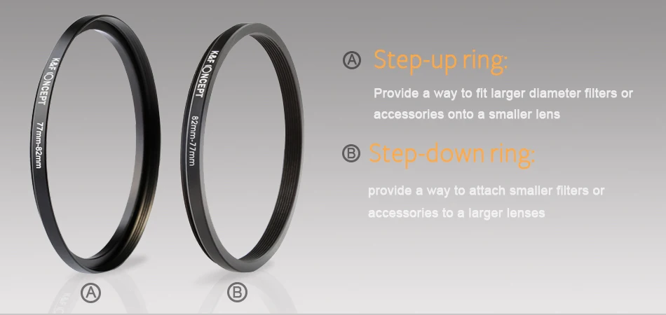 Шаг : Обеспечьте возможность установки фильтров большего диаметра или аксессуаров на объектив меньшего размера Понижение: предоставьте способ прикрепить меньшие фильтры или аксессуары к большим объективам