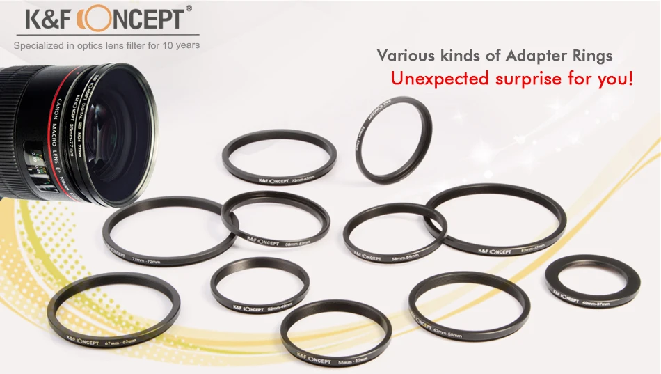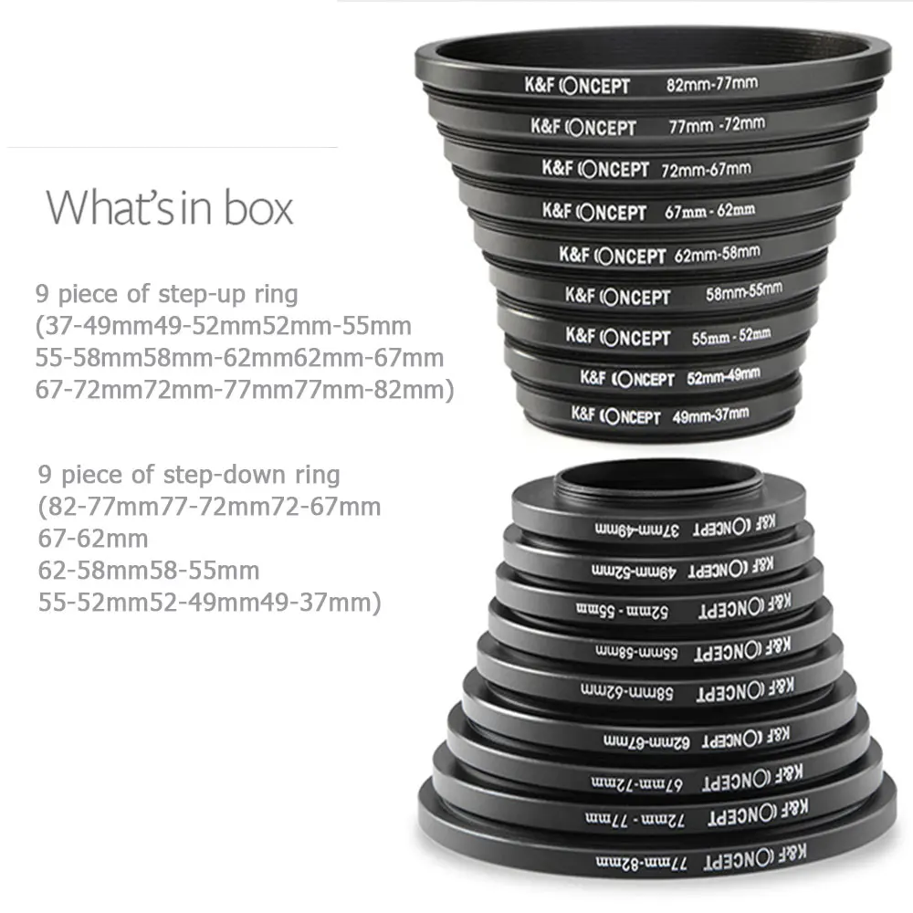 КОНЦЕПЦИЯ K & F 18шт 37-82мм 82-37мм Объектив с понижающим кольцом Фильтр для Canon Nikon все камеры DSLR 37 49 52 55 58 62 67 72 77 82 мм