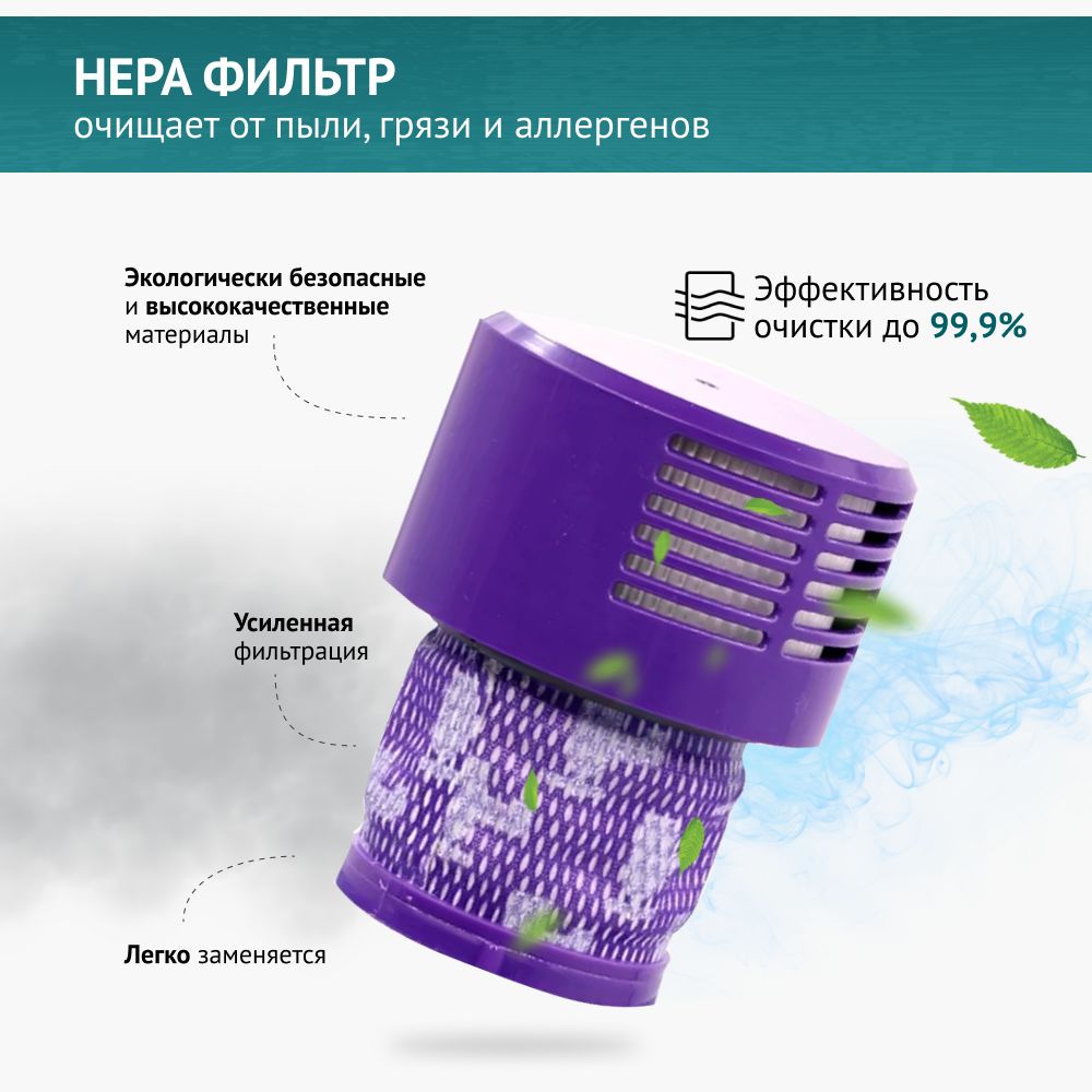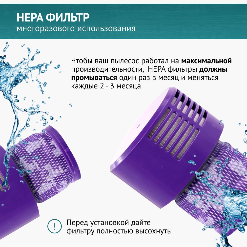 Фильтр для пылесоса Dyson V10, SV12 изготовлен из высококачественных материалов, его можно промывать и использовать повторно.