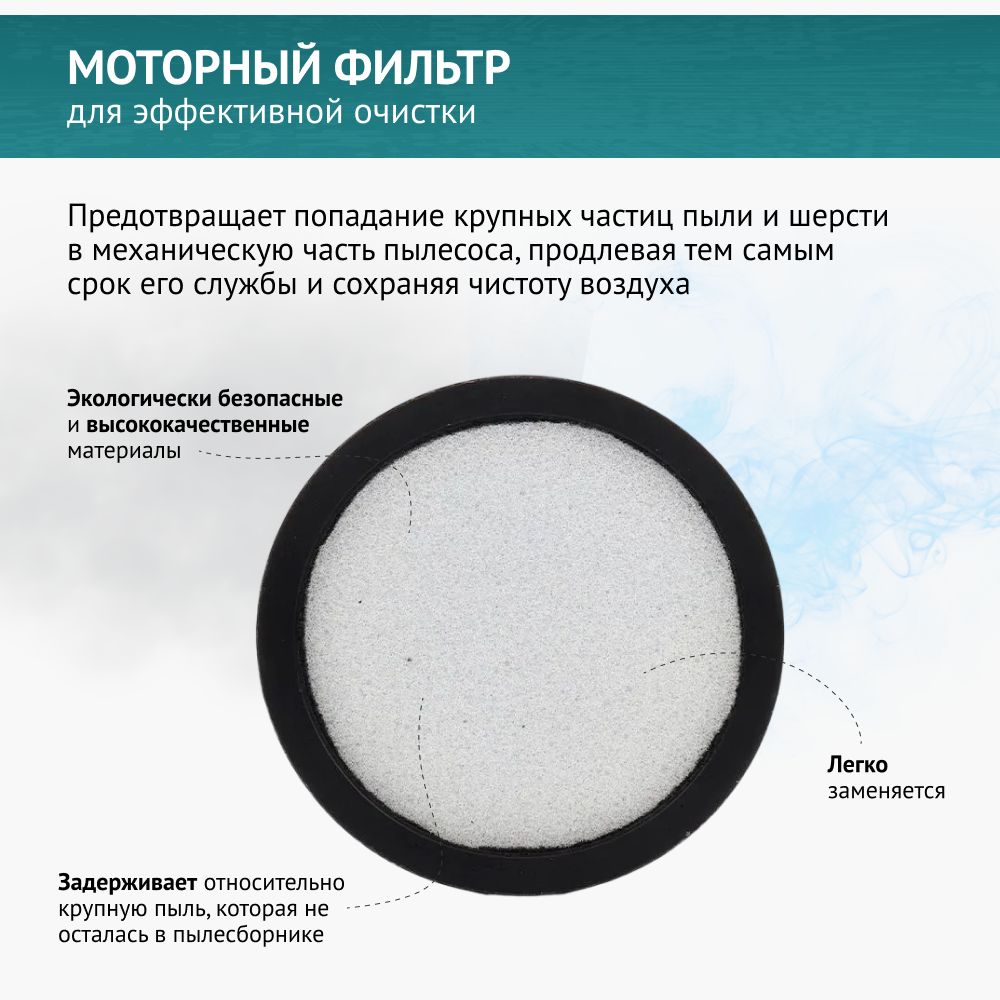 Описание: Фильтр предотвращает попадание крупных частиц пыли и шерсти в механическую часть пылесоса, продлевая тем самым срок его службы и сохраняя чистоту воздуха.