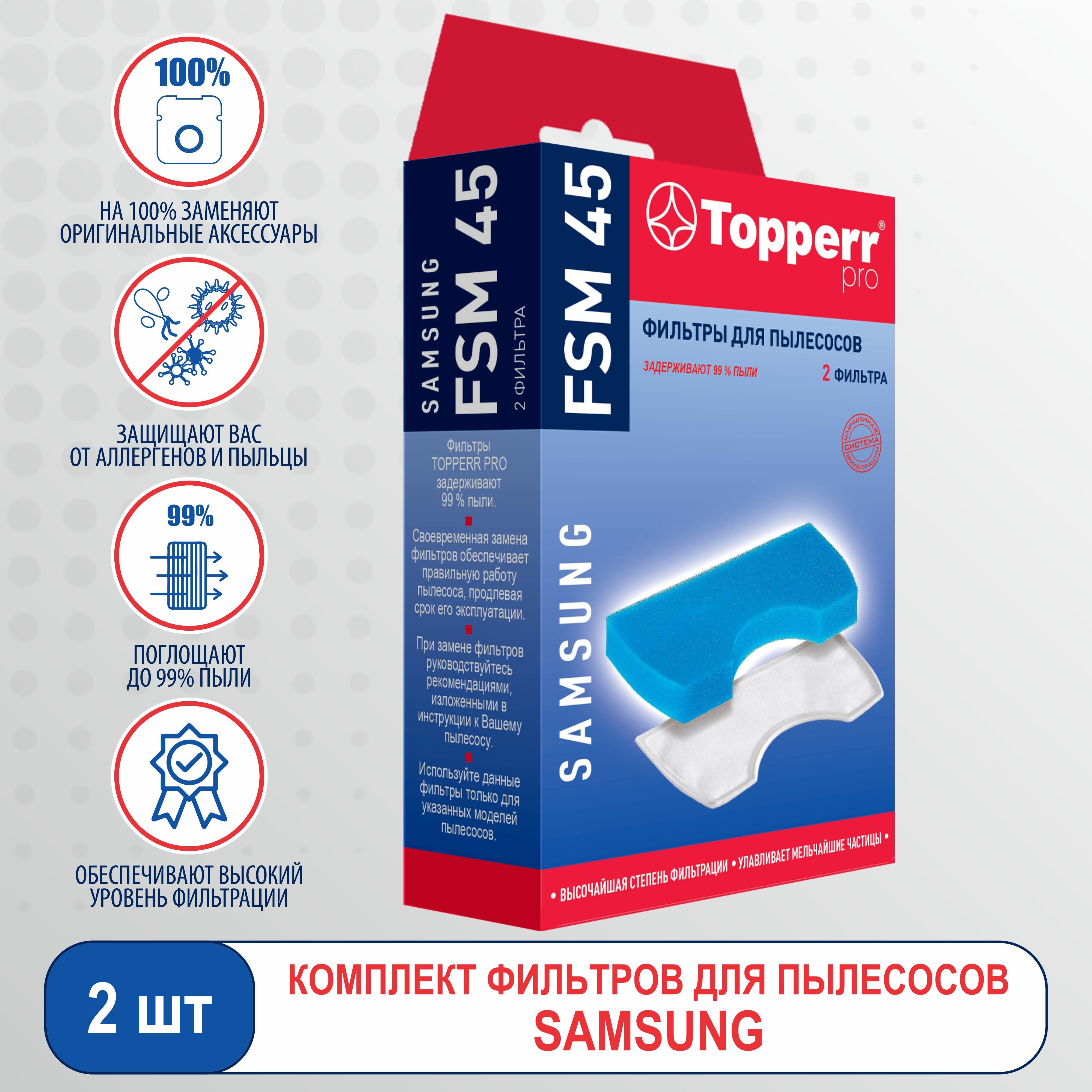 Фильтр для пылесоса Samsung, комплект фильтров на Самсунг (губчатый и сетчатый фильтры) Topperr FSM45 1111