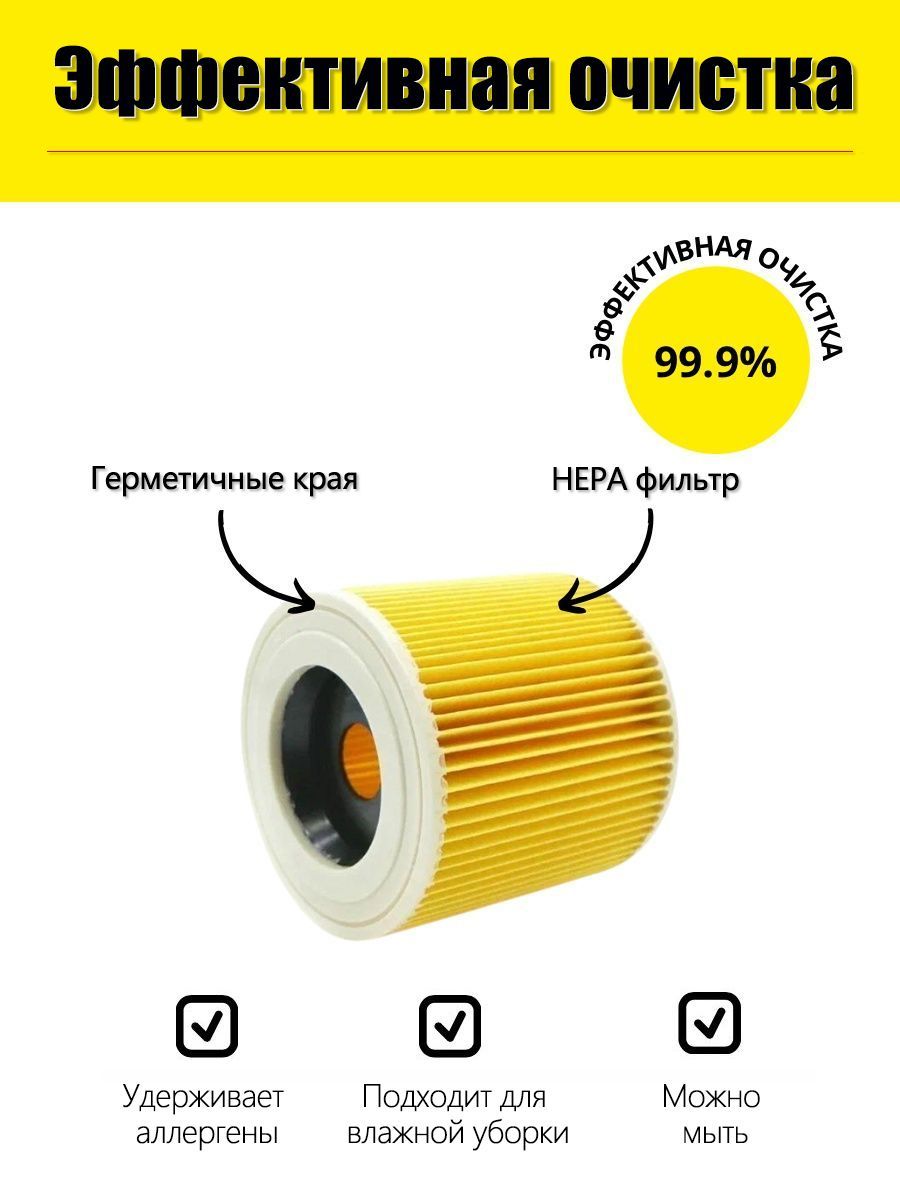 Описание: Во время работы пылесоса некоторое количество пыли попадает обратно в помещение, как правило, это самые мелкие частицы. Фильтр для пылесоса Karcher помогает снизить уровень загрязнения воздуха специальные фильтры, которые задерживают даже незначительные пылинки.⠀