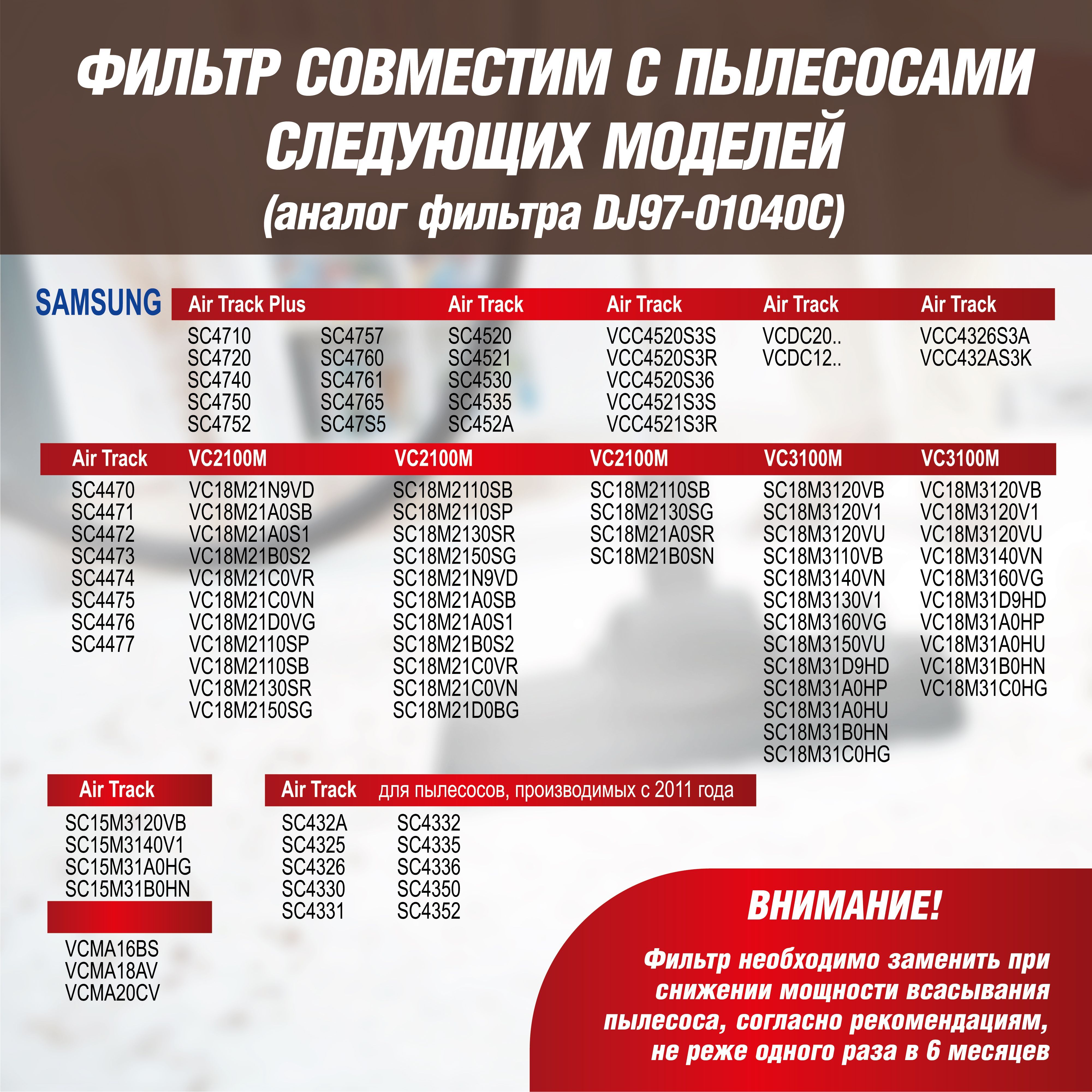 Фильтр для пылесосов Samsung SC4520, SC4326, SC4760, SC432A, DJ97-01040C