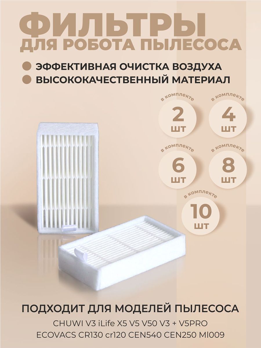Фильтр для робота пылесоса ILIFE V5, V5s, V3, V3s, V5pro, V50, V55, V5s, Kitfort KT-518 (2шт)