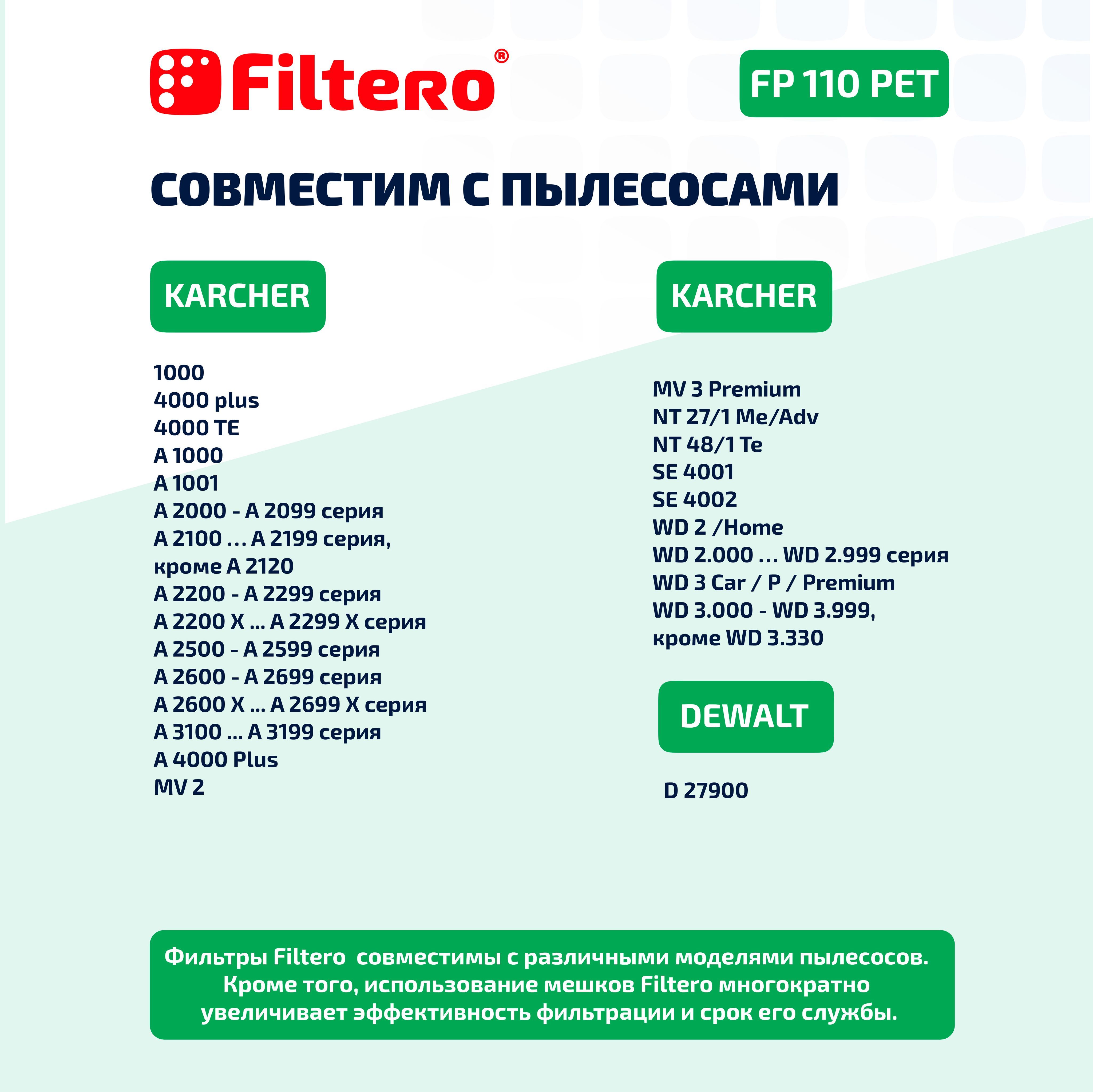 Фильтр Filtero FP 110 PET Pro для пылесосов Karcher WD 2,WD 3 из полиэстера, моющийся