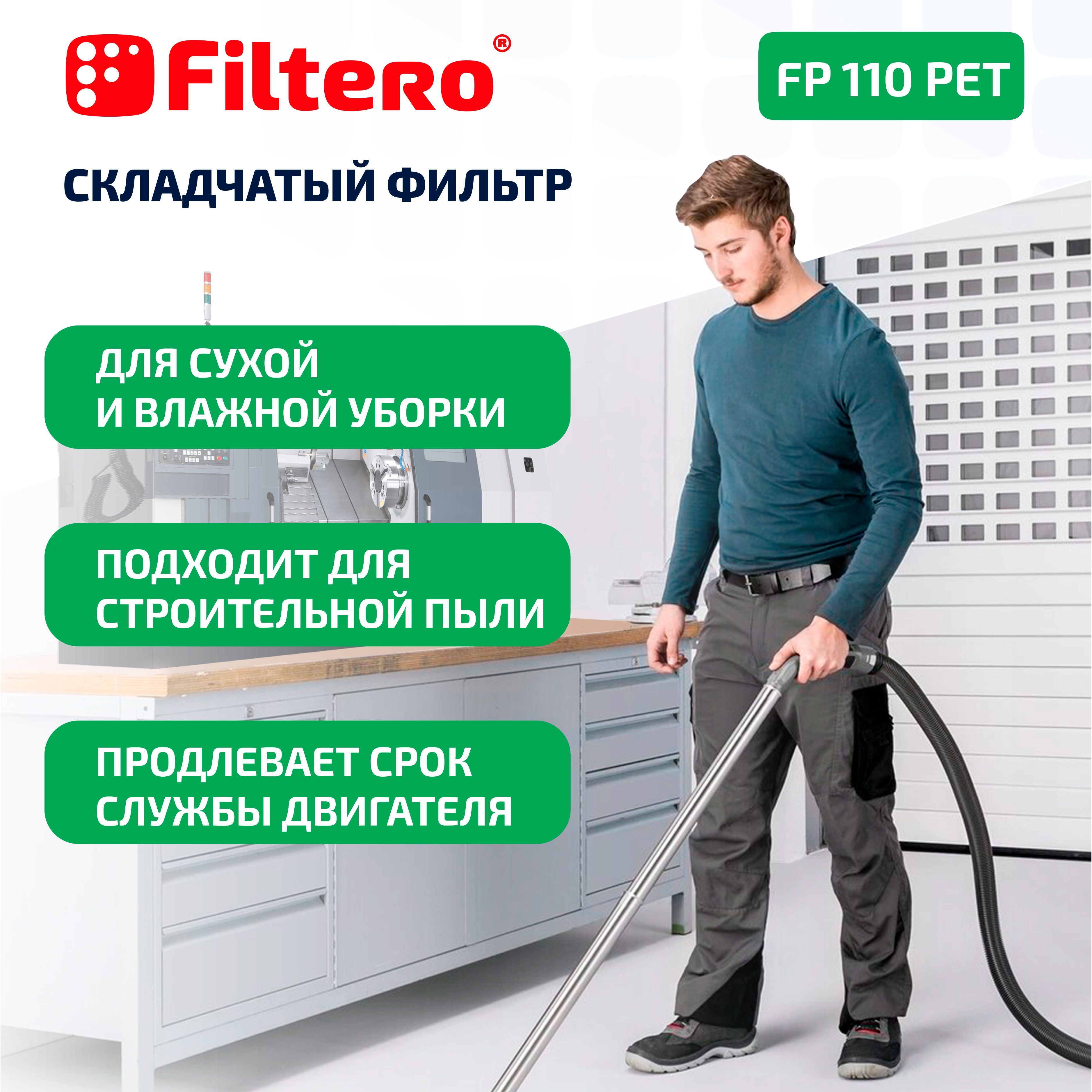 Описание: Фильтр Filtero FP 110 PET Pro обладает высокой степенью фильтрации и не боится влаги, что позволяет использовать пылесос для работы в режимах сухой и влажной уборки и экономит время на смену фильтра.