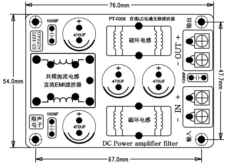 Этот модуль подходит для исключения использования источника питания постоянного тока с электромагнитными помехами. Его можно применять для фильтрации после переключения выхода источника питания, автомобилей, мотоциклов и цепей постоянного тока с сильными электромагнитными помехами.