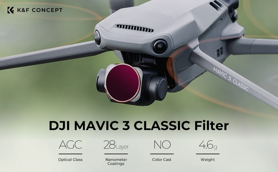 Фильтр объектива K & F Concept ND8 & PL для DJI Mavic 3 Classic с 28 слоями нанопокрытия Противоударная зеленая пленка водонепроницаемая
