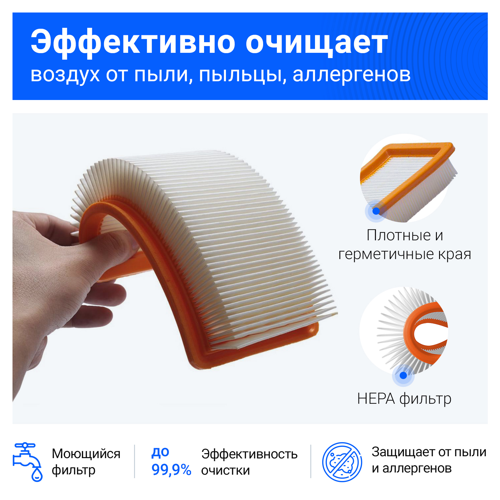 • Плоский складчатый фильтр для пылесоса Karcher гарантирует эффективность очистки до 99,9%.⠀⠀