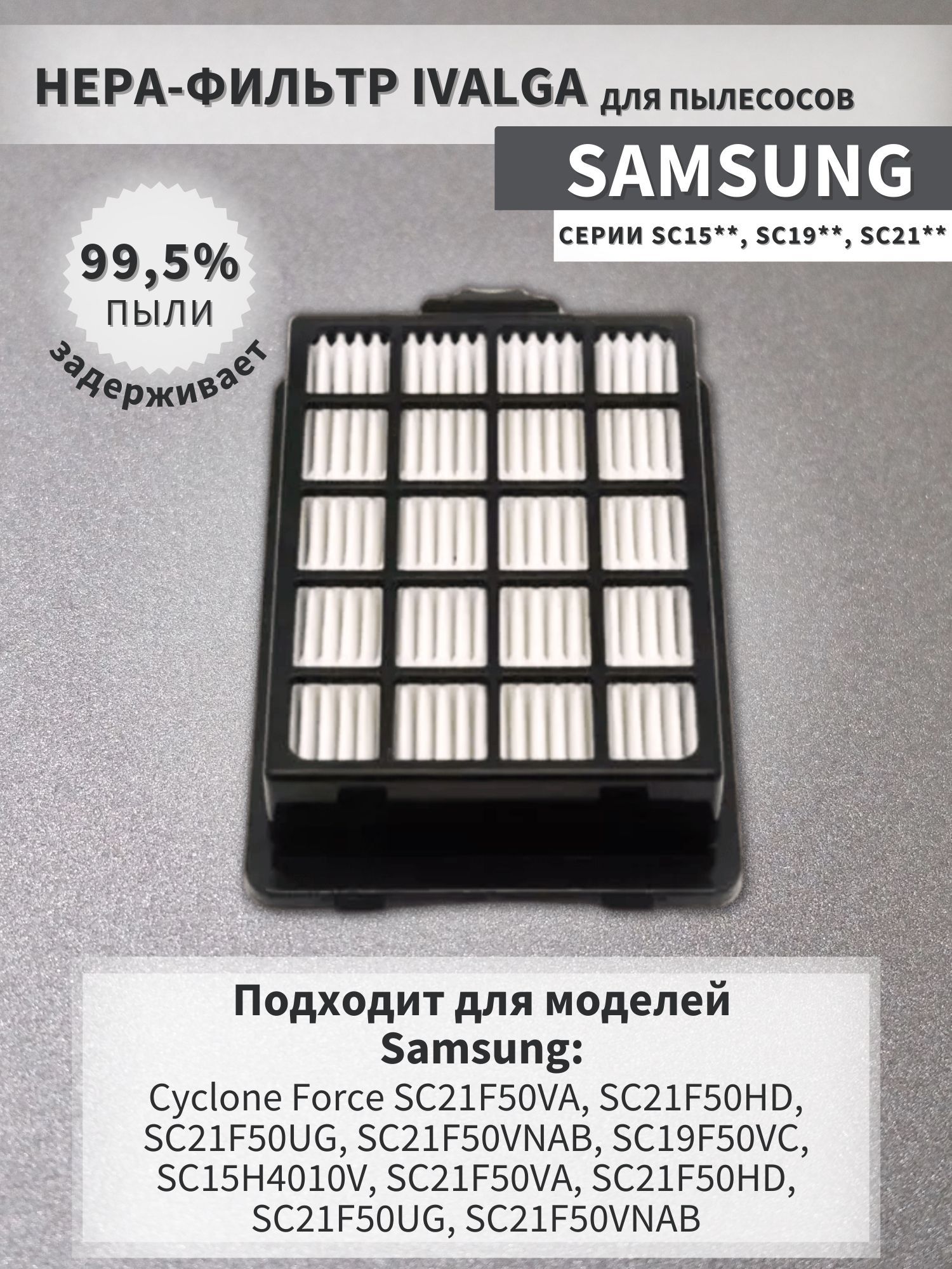 Фильтр подходит для пылесосов Cyclone Force SC21F50VA SC21F50HD SC21F50UG SC21F50VNAB SC19F50VC SC15H4010V SC21F50VA SC21F50HD SC21F50UG SC21F50VNAB (DJ97-01962A HEPA13)