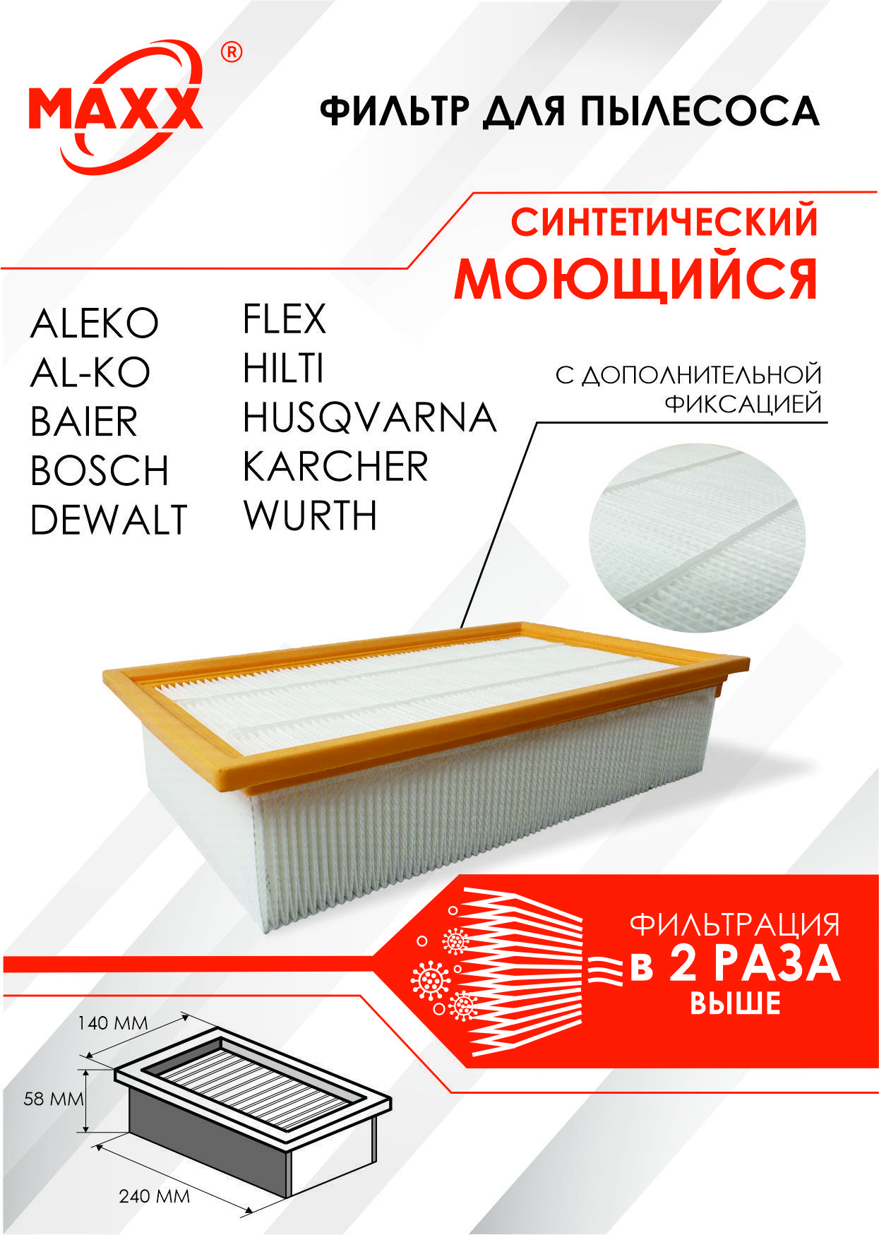 Фильтр PRO синтетический, моющийся для пылесоса Aleko, Al-Ko, Baier, Bosch, DeWalt, Flex, Hilti, Karcher, Wurth