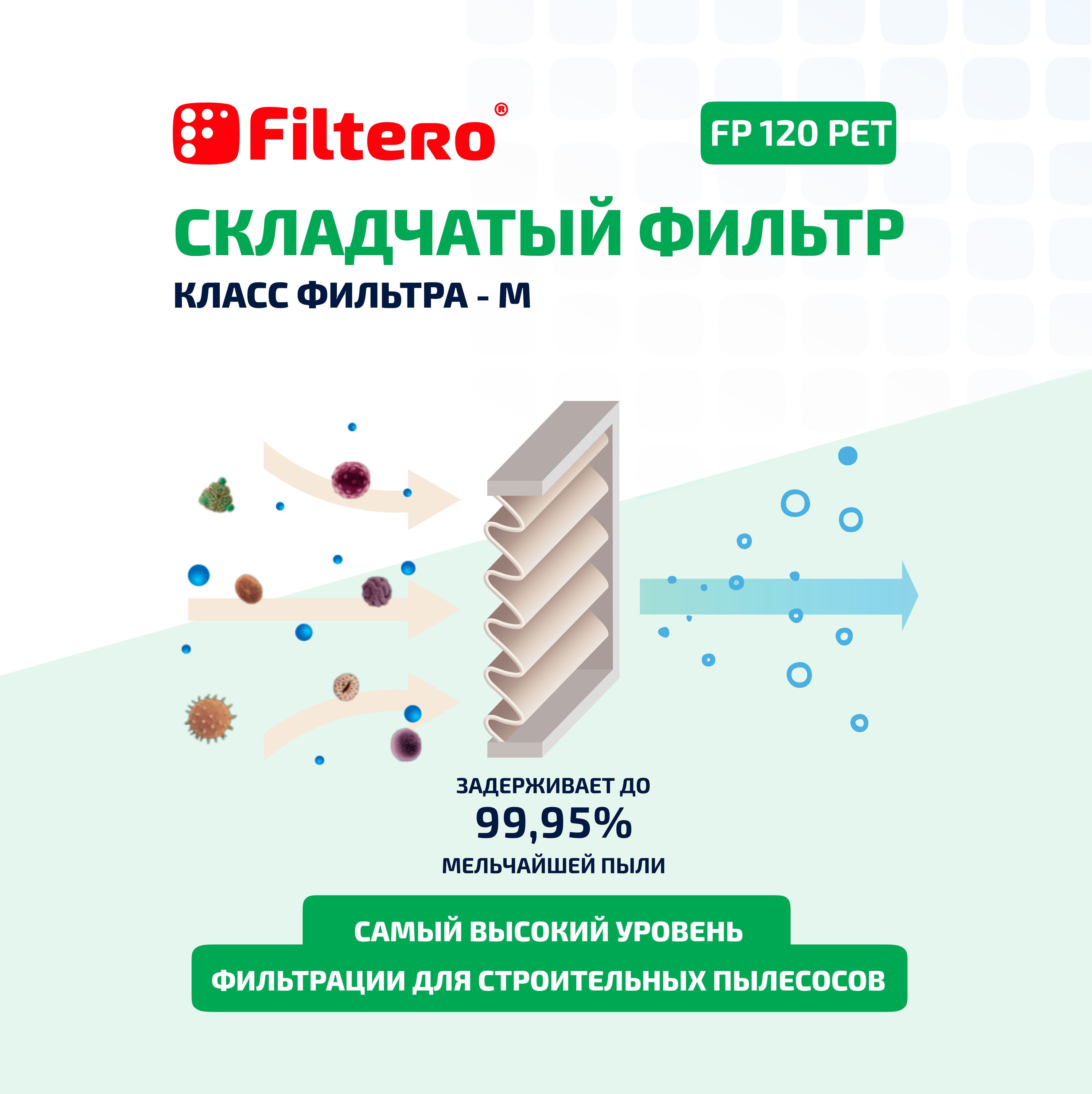 Фильтр складчатый из полиэстера Filtero FP 120 PET Pro для пылесосов BOSCH, MAKITA, METABO