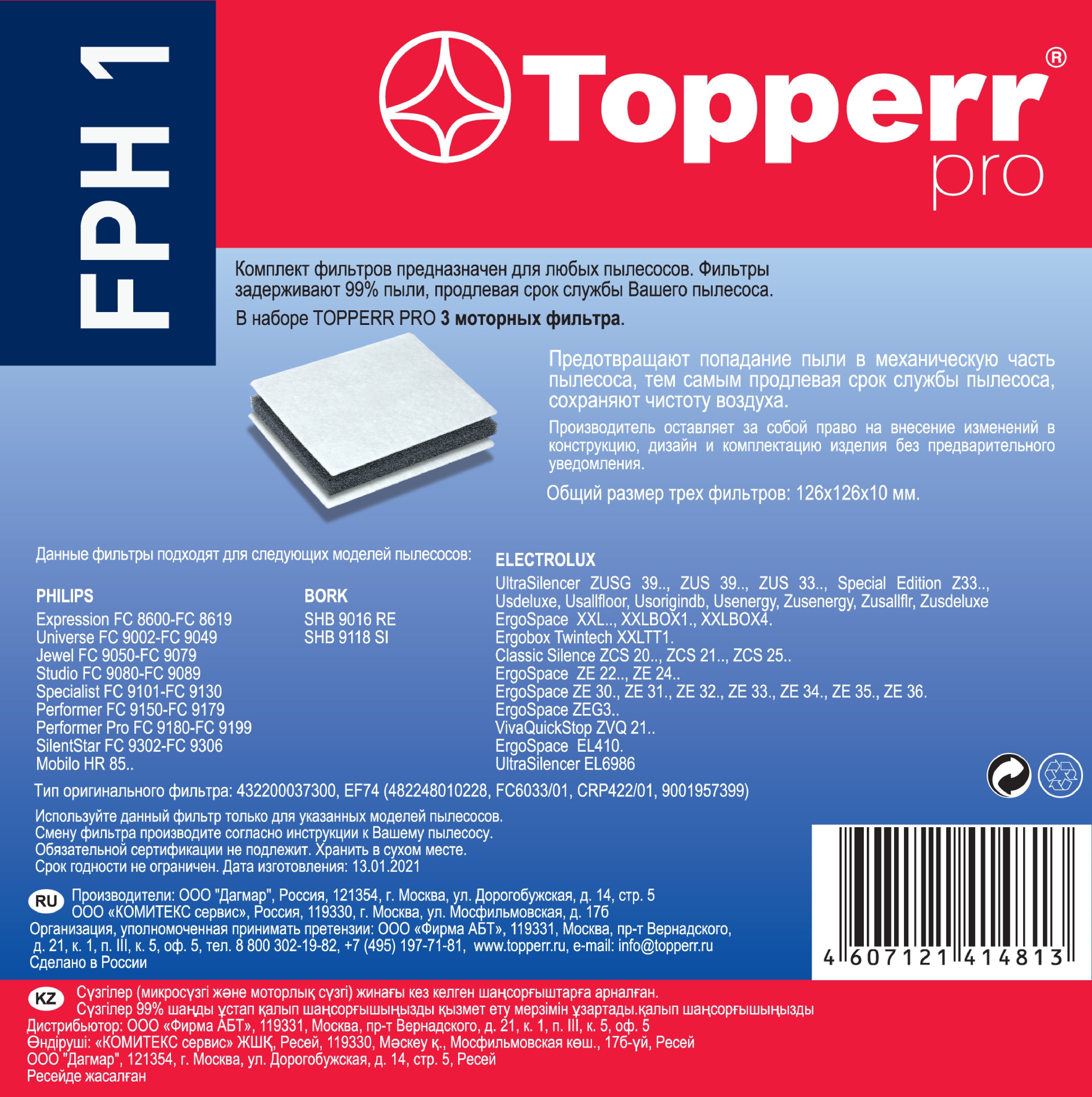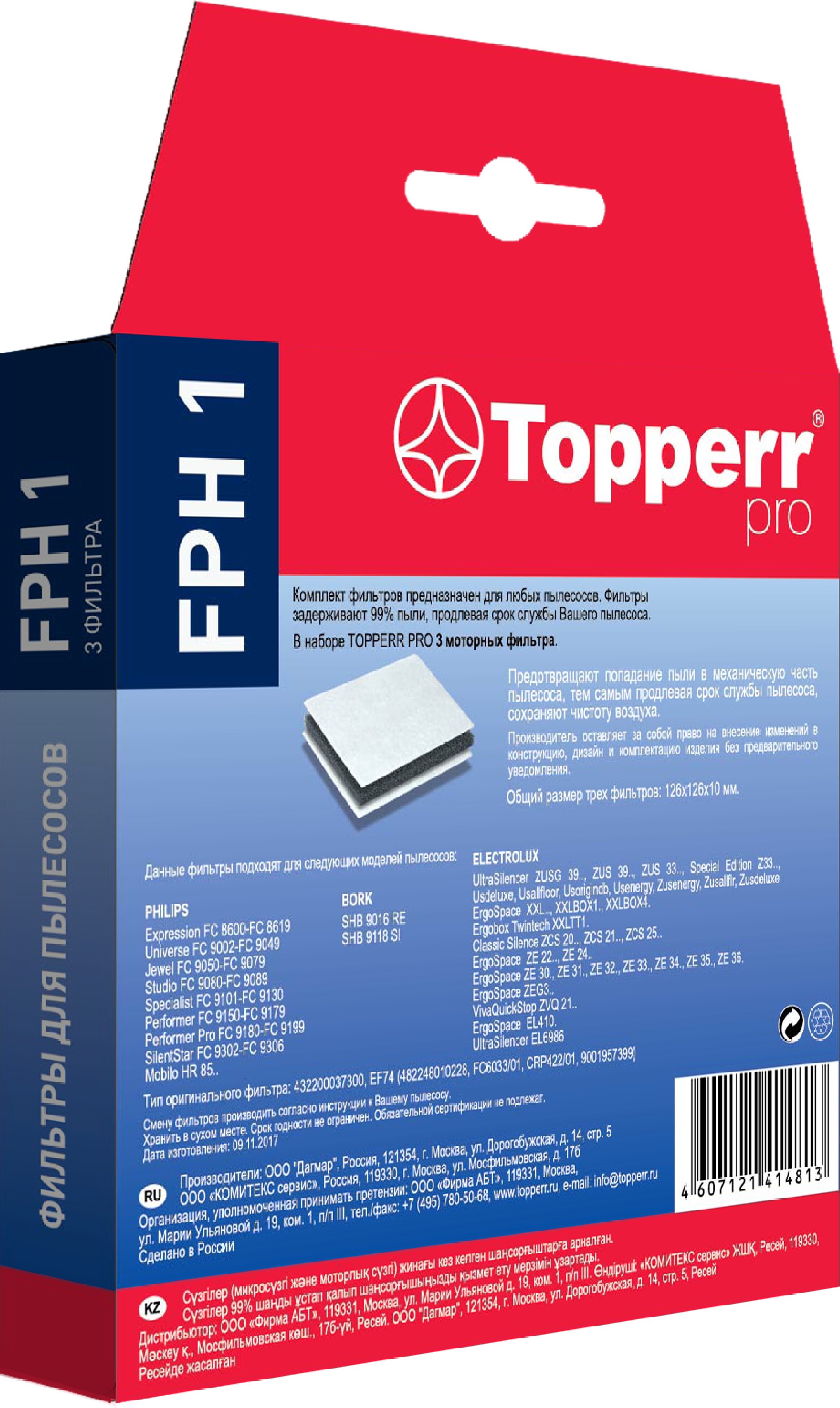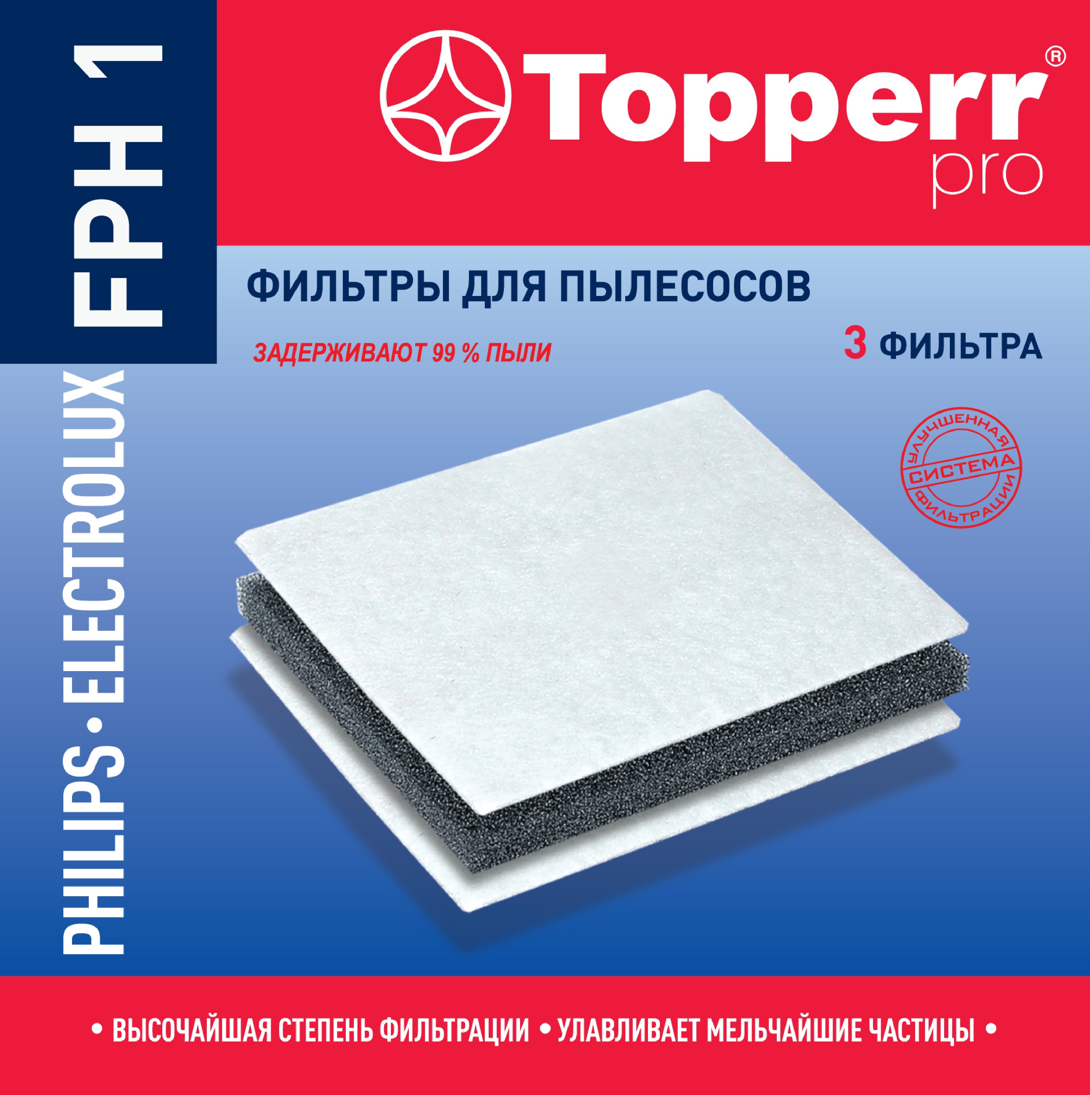 Фильтр Topperr FPH 1 для пылесоса PHILIPS, комлект из 3 шт. / Фильтр для пылесоса арт. 1156