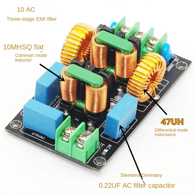 4) трехступенчатая фильтрация в синфазном режиме из-за использования двухступенчатой (также известной как двухсекционная) фильтрации, поэтому эффект фильтрации шума лучше. Для некоторых пользователей есть повторяющиеся частоты в несколько килогерц