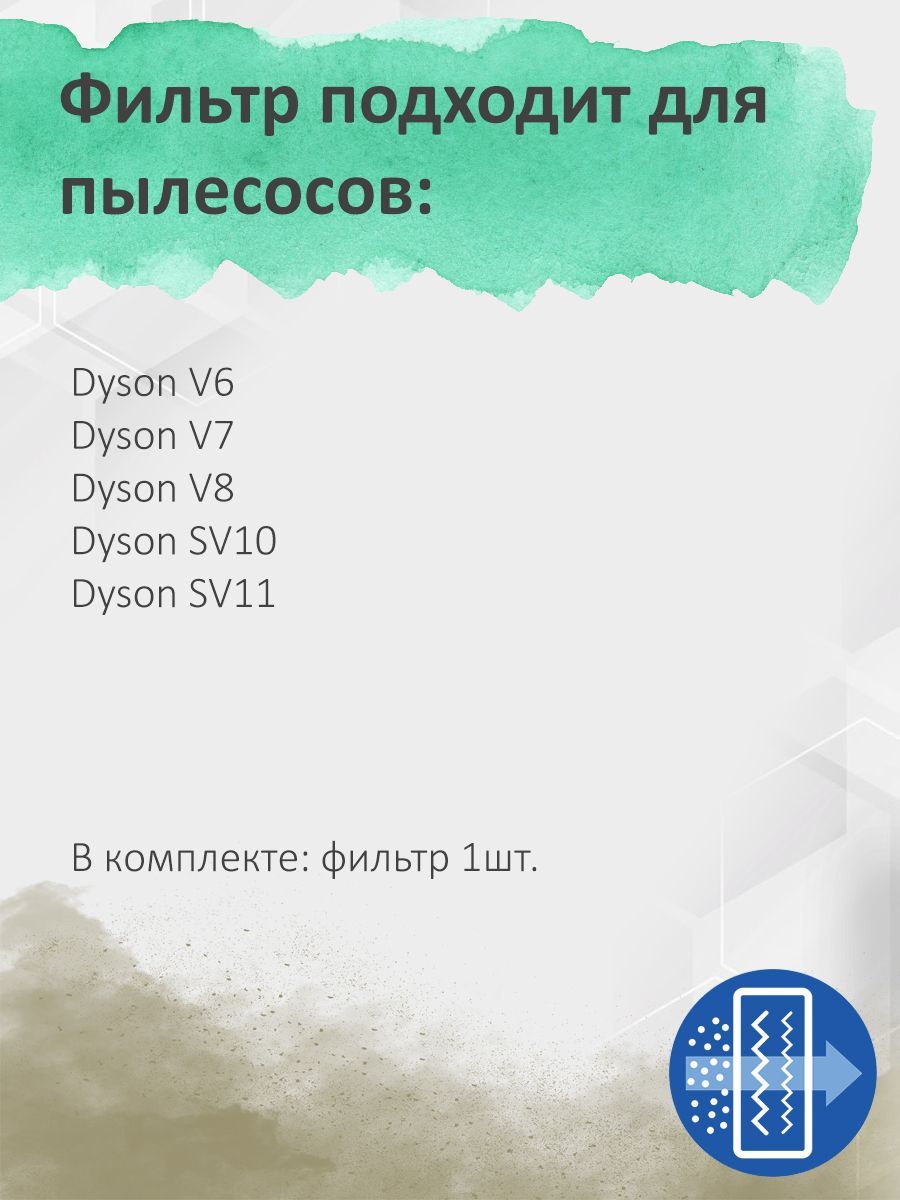 Описание: Комплект из двух фильтров для пылесоса Dyson V6/V7 / V8 (SV10/SV11), а также всех их модификаций (высокоэффективный предмоторный фильтр). Фильтр Dyson V6 V7 V8 .