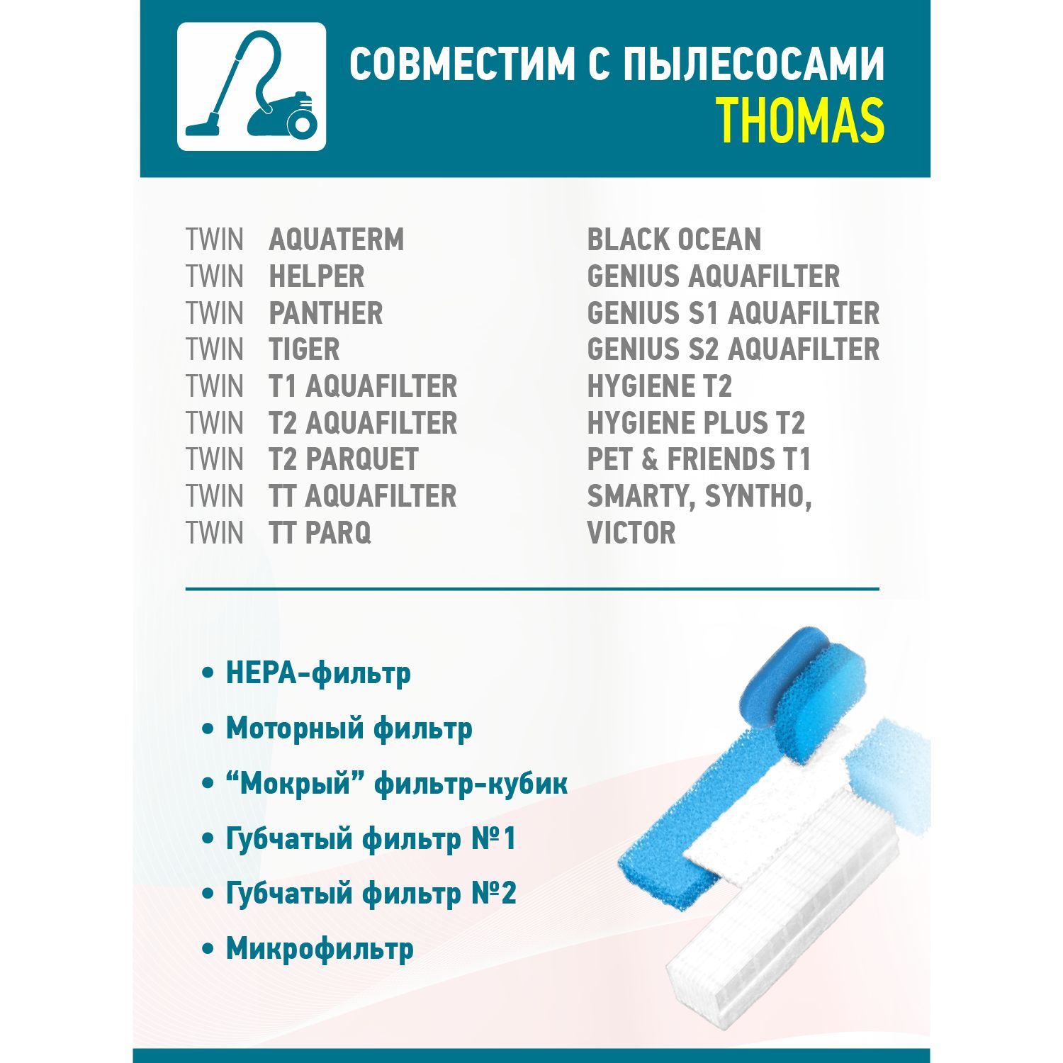 Совместимые модели:Thomas Black Ocean, Thomas Genius Aquafilter, Thomas Genius S1 Aquafilt, Thomas Genius S1 Eco AquaFilter, Thomas Genius S2 AquaFilter, Thomas Hygiene Plus T2, Thomas Hygiene T2, Thomas Pet and Friends T1 Aquafilter, Thomas Smarty, Thomas Twin Aquafilter, Thomas Twin Aquaterm, Thomas Twin Helper, Thomas Twin T1 Aquafilter, Thomas Twin T2 Aquafilter, Thomas Twin Tiger, Thomas Twin TT Aquafilter, Thomas Twin T2 Hygiene Plus, Thomas Twin T2 Hygiene Plus, Thomas Twin T2 Hygiene, Thomas Twin Pet & Friends, Thomas Twin Pet & Friends, Thomas Twin T1, Thomas Twin T1, Thomas Twin T2, Thomas Twin T2, Thomas Twin T1 Aqua Turbo, Thomas Twin T1 Aqua Turbo, Thomas Twin T2 Aquafilter, Thomas Twin TT, Thomas Twin TT, Thomas Twin TT Parquet Aquafilter