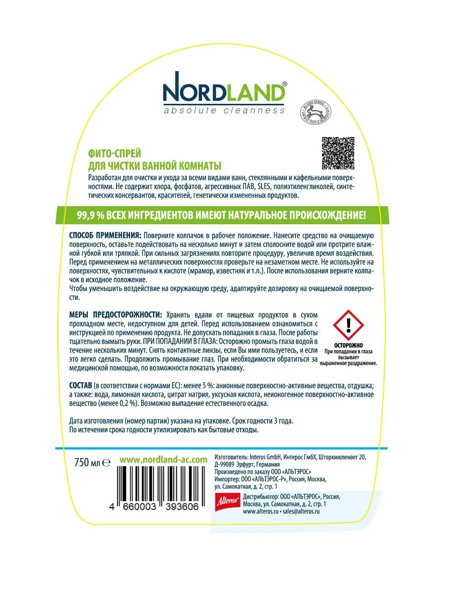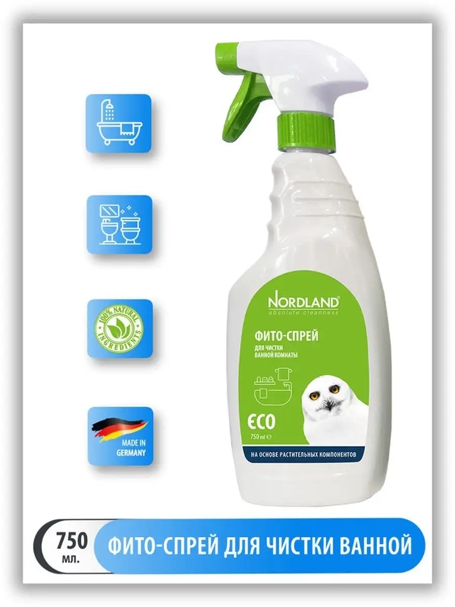 Описание: Экологичный фито спрей для ежедневной уборки ванной комнаты NORDLAND на основе растительных компонентов. Разработан для очищения сантехники: раковин, ванн, джакузи, бассейна, кранов, биде, душевых насадок, эмалированной сантехники и изделий с хромированным покрытием, фаянсовых изделий, кафельных покрытий и пластиковых панелей. Эффективно справляется со сложными и застарелыми пятнами. Удаляет известковый налет, ржавчину, следы мыла и пр. бытовые загрязнения. Придает блеск, сохраняя эффект антиналет на несколько дней, устраняет неприятные запахи, препятствует размножению бактерий. Средство полностью смывается водой. Эко состав и биоразлагаемая формула средства позволяет использовать его в домах с септиками. Не содержит хлора, фосфатов, агрессивных ПАВ, абразивных частиц, SLES, полиэтиленгликолей, генетически измененных продуктов, синтетических консервантов и красителей. Входящие в состав анионные и неионные поверхностно-активные вещества получают путем переработки растительных масел. Лимонная кислота и цитрат натрия производятся из гидролизата кукурузы, маниоки и батата, а также из тростникового и свекловичного сахаров, мелассы и отходов сельского хозяйства. Уксусная кислота - результат окисления этилового спирта, получаемого сбраживанием растительного сырья. Попробуйте всю линейку фито спреев NORDLAND: для чистки сантехники, для чистки стекол и зеркал, для чистки ванной комнаты, для чистки душевых кабин и акриловых ванн, для удаления жира. А так же можно приобрести набор фито спреев для уборки вашего дома