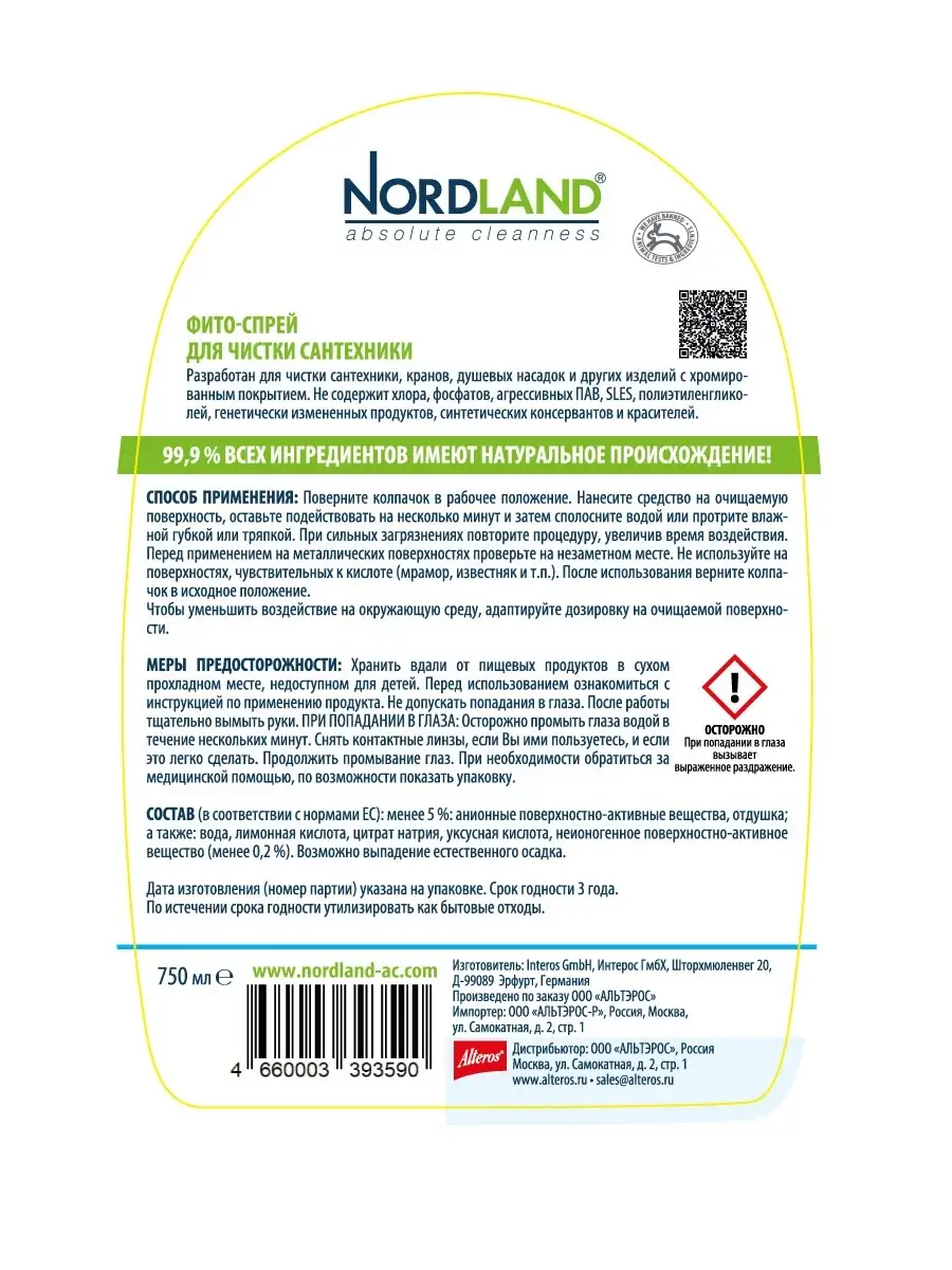 Описание: Экологичный фито спрей для ежедневной уборки ванной комнаты NORDLAND на основе растительных компонентов. Разработан для очищения сантехники: раковин, ванн, джакузи, бассейна, кранов, биде, душевых насадок, эмалированной сантехники и изделий с хромированным покрытием, фаянсовых изделий, кафельных покрытий и пластиковых панелей. Эффективно справляется со сложными и застарелыми пятнами. Удаляет известковый налет, ржавчину, следы мыла и пр. бытовые загрязнения. Придает блеск, сохраняя эффект антиналет на несколько дней, устраняет неприятные запахи, препятствует размножению бактерий. Средство полностью смывается водой. Эко состав и биоразлагаемая формула средства позволяет использовать его в домах с септиками. Не содержит хлора, фосфатов, агрессивных ПАВ, абразивных частиц, SLES, полиэтиленгликолей, генетически измененных продуктов, синтетических консервантов и красителей. Входящие в состав анионные и неионные поверхностно-активные вещества получают путем переработки растительных масел. Лимонная кислота и цитрат натрия производятся из гидролизата кукурузы, маниоки и батата, а также из тростникового и свекловичного сахаров, мелассы и отходов сельского хозяйства. Уксусная кислота - результат окисления этилового спирта, получаемого сбраживанием растительного сырья. Попробуйте всю линейку фито спреев NORDLAND: для чистки сантехники, для чистки стекол и зеркал, для чистки ванной комнаты, для чистки душевых кабин и акриловых ванн, для удаления жира. А так же можно приобрести набор фито спреев для уборки вашего дома.