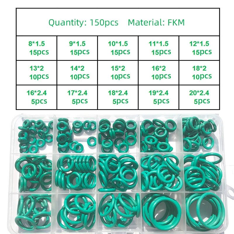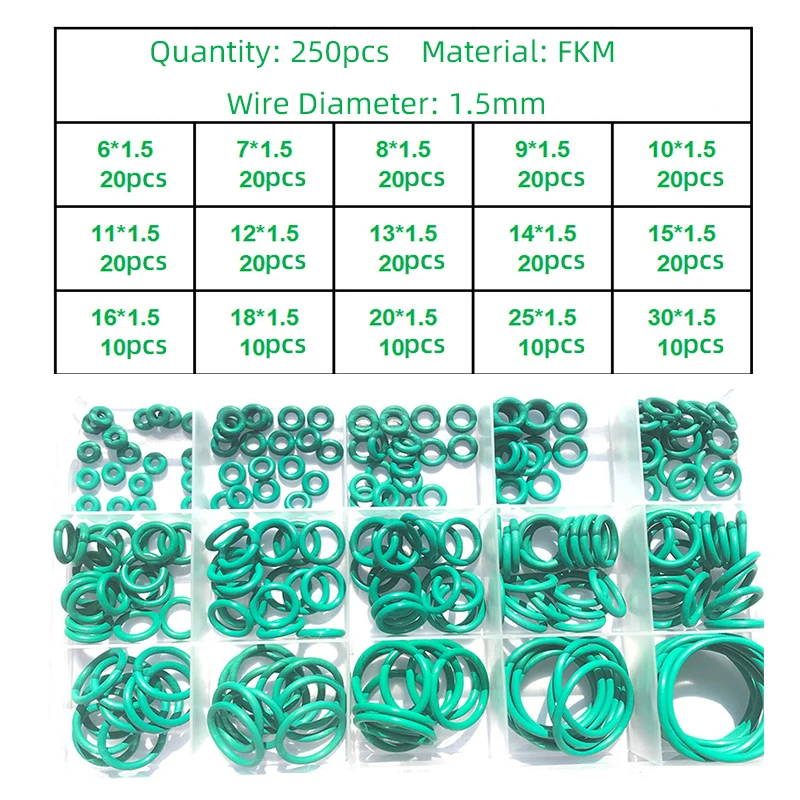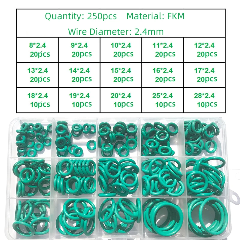 FKM O Ring 250-100Pcs CS1~3.1mm Green FKM Fluorine Rubber O Ring Sealing Gasket Insulation Oil High Temperature Resistance Green