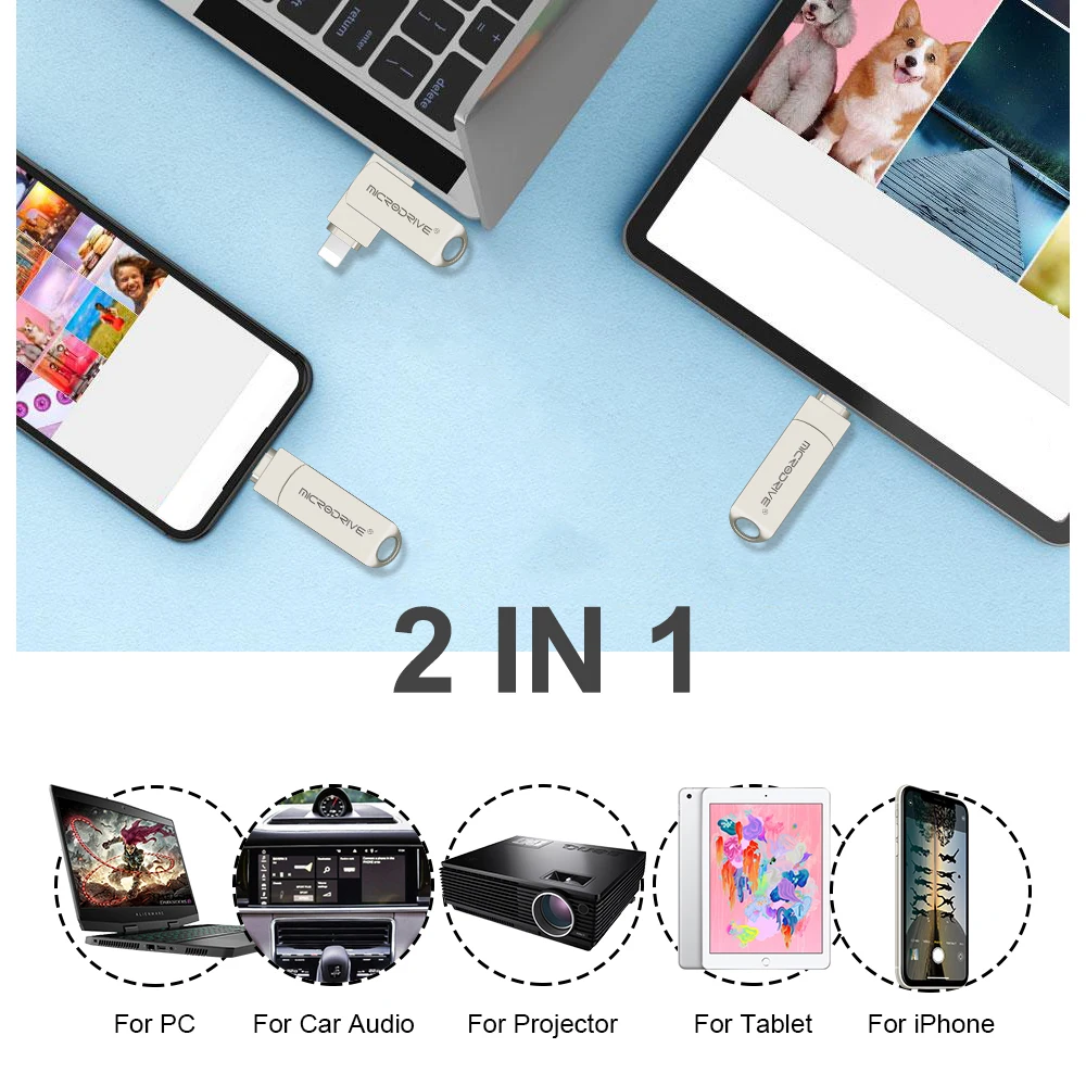 Флеш-накопитель Usb 3,0 для iPhone с интерфейсом lightning 2 в 1, Usb 12/13, флеш-накопитель для Iphone7/8 // 11/14/для Ipad