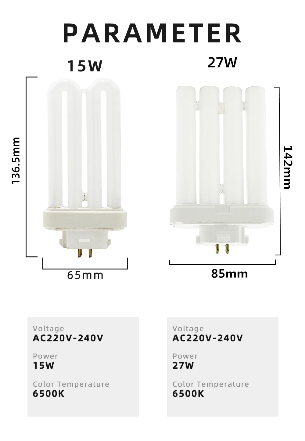 Флуоресцентная лампа с четырьмя иглами, 15 Вт, 27 Вт, 6500 В переменного тока