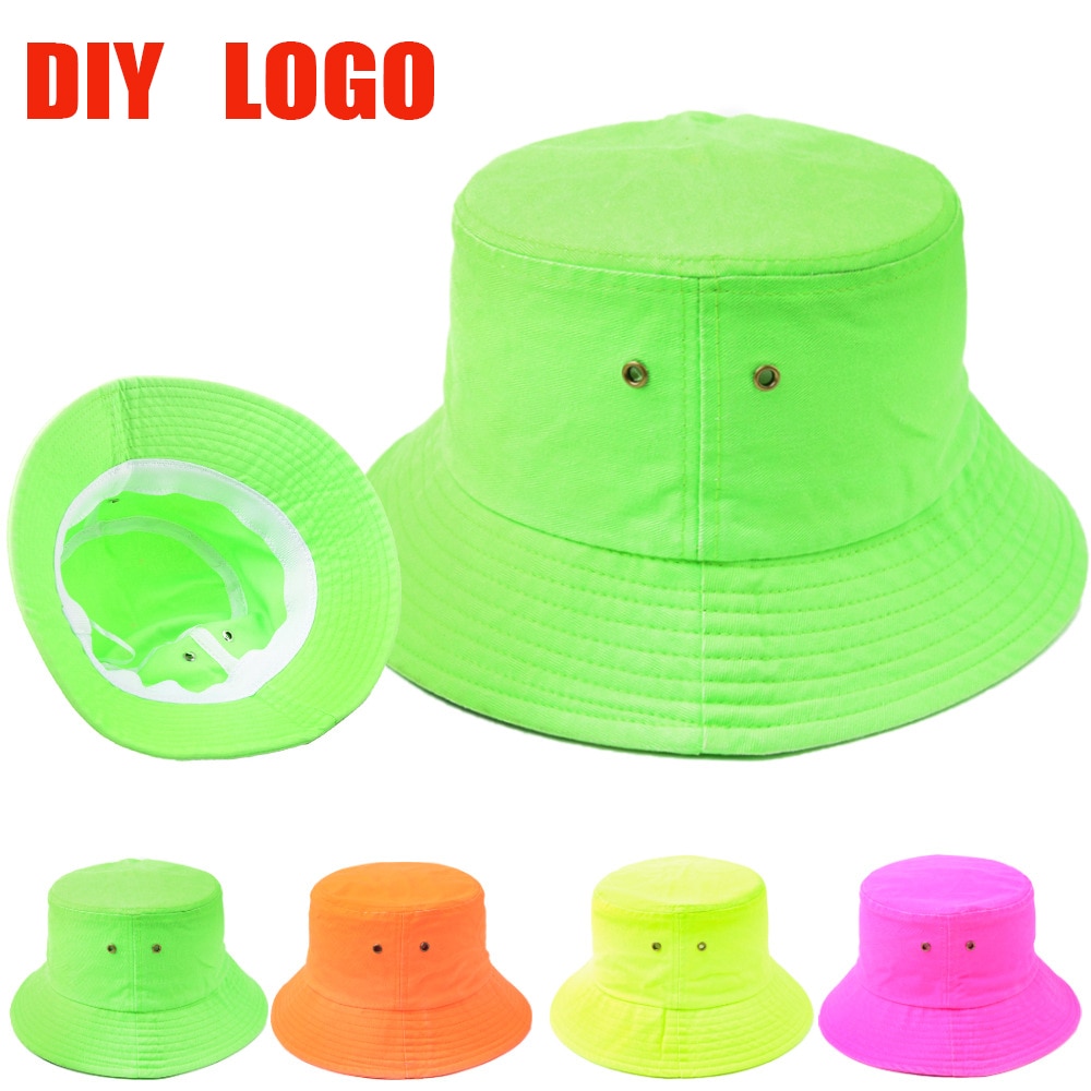 Флуоресцентная зеленая хлопковая простая женская панама в стиле хип-хоп с принтом логотипа «сделай сам», Пляжная Солнцезащитная шляпа в виде кролика для рыбалки