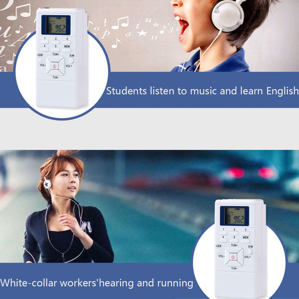 FM Карманный радиоприемник Цифровая настройка стерео однодиапазонный с ЖК-дисплеем наушники для ходьбы