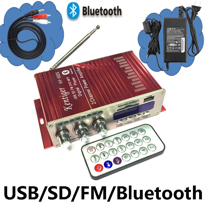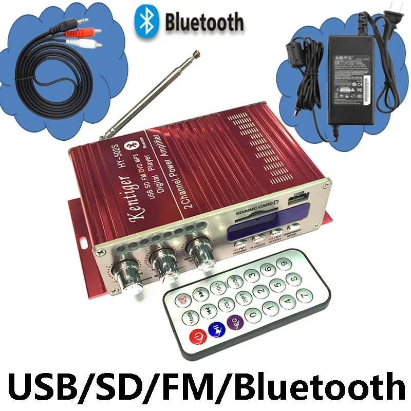 3. С мощностью 12V5A: посылка включает усилитель + пульт дистанционного управления + Мощность 12V5A + аудиокабель + инструкцию
