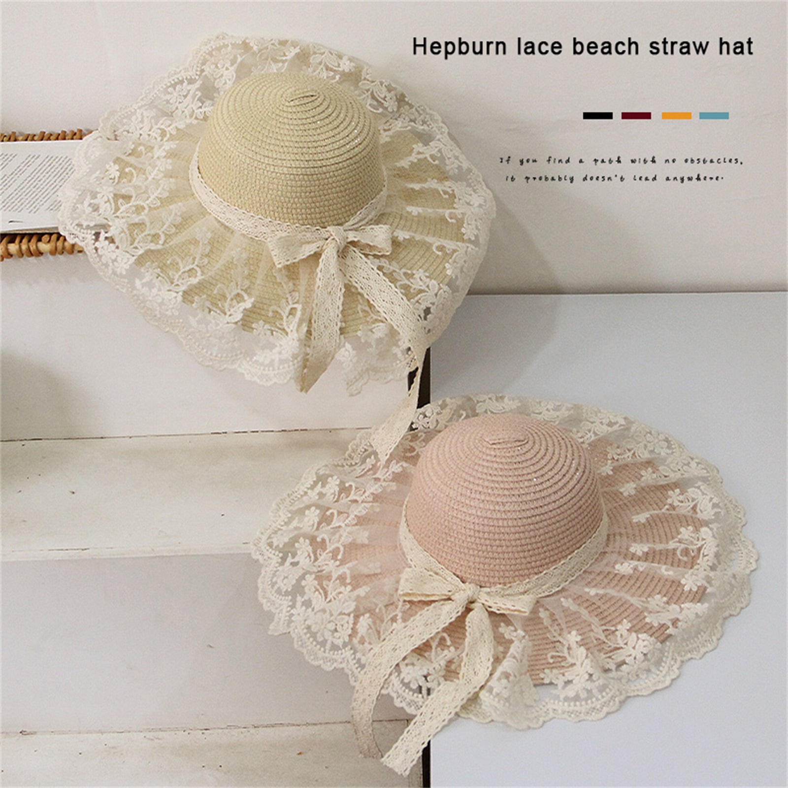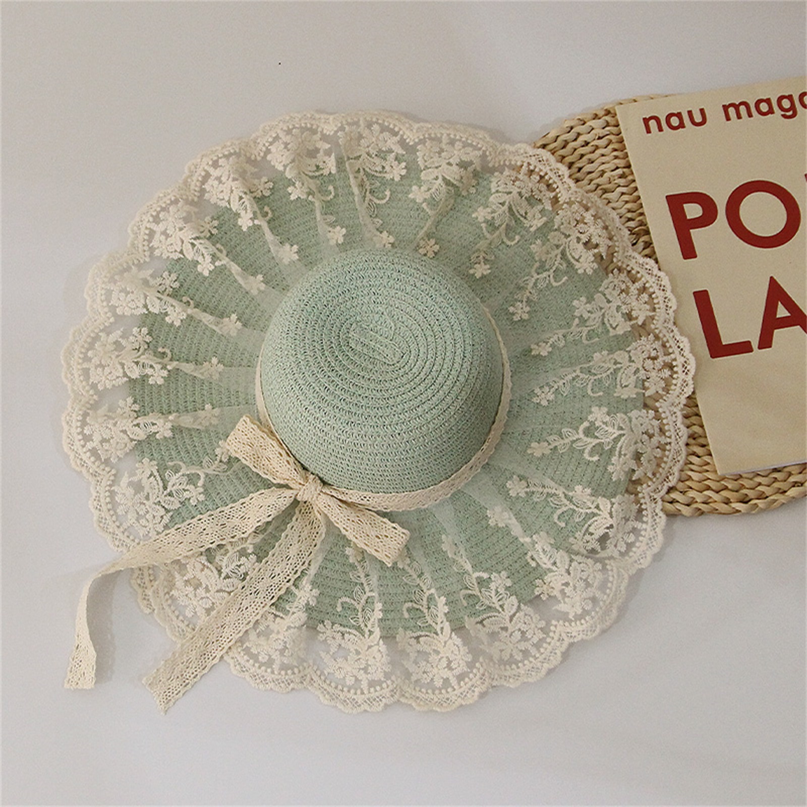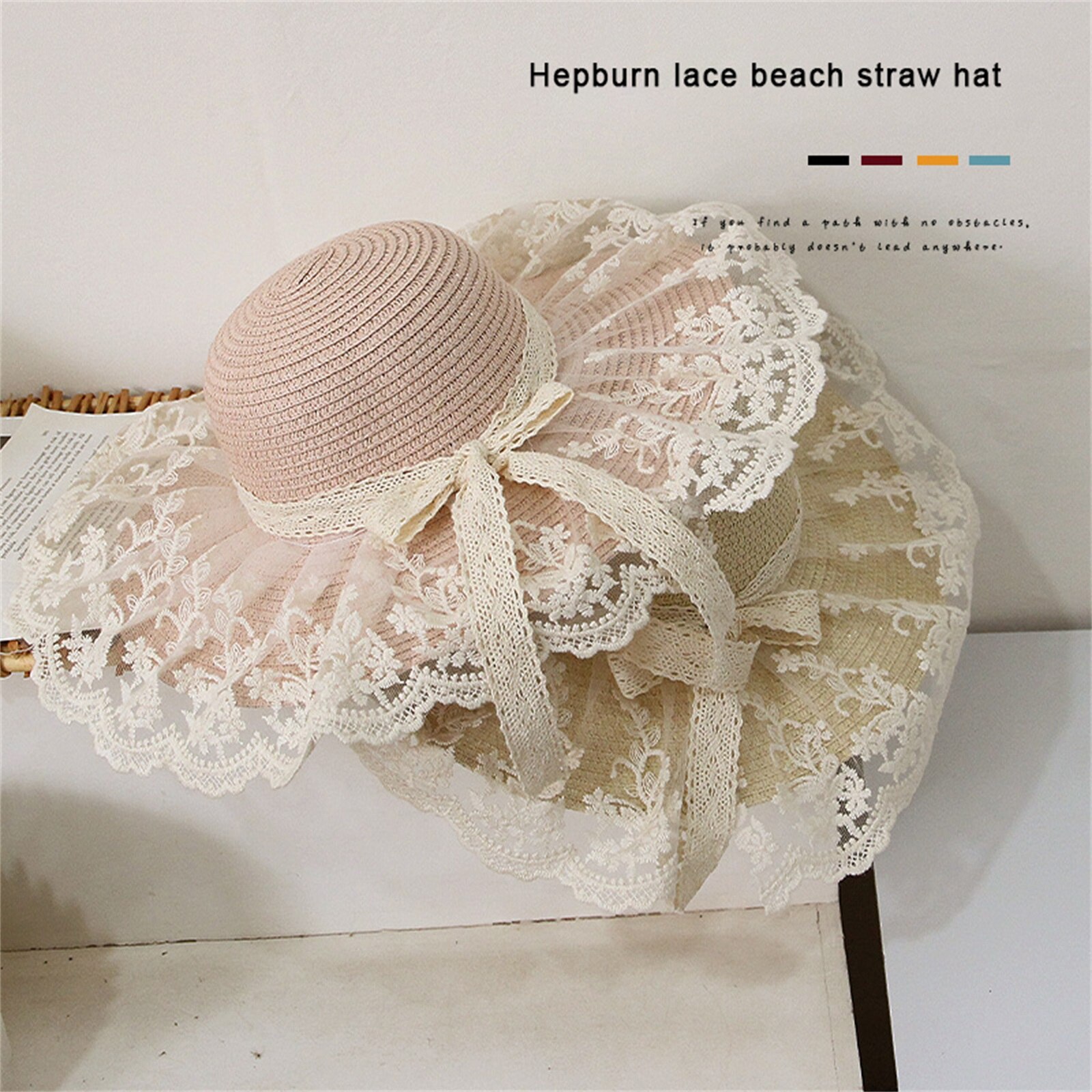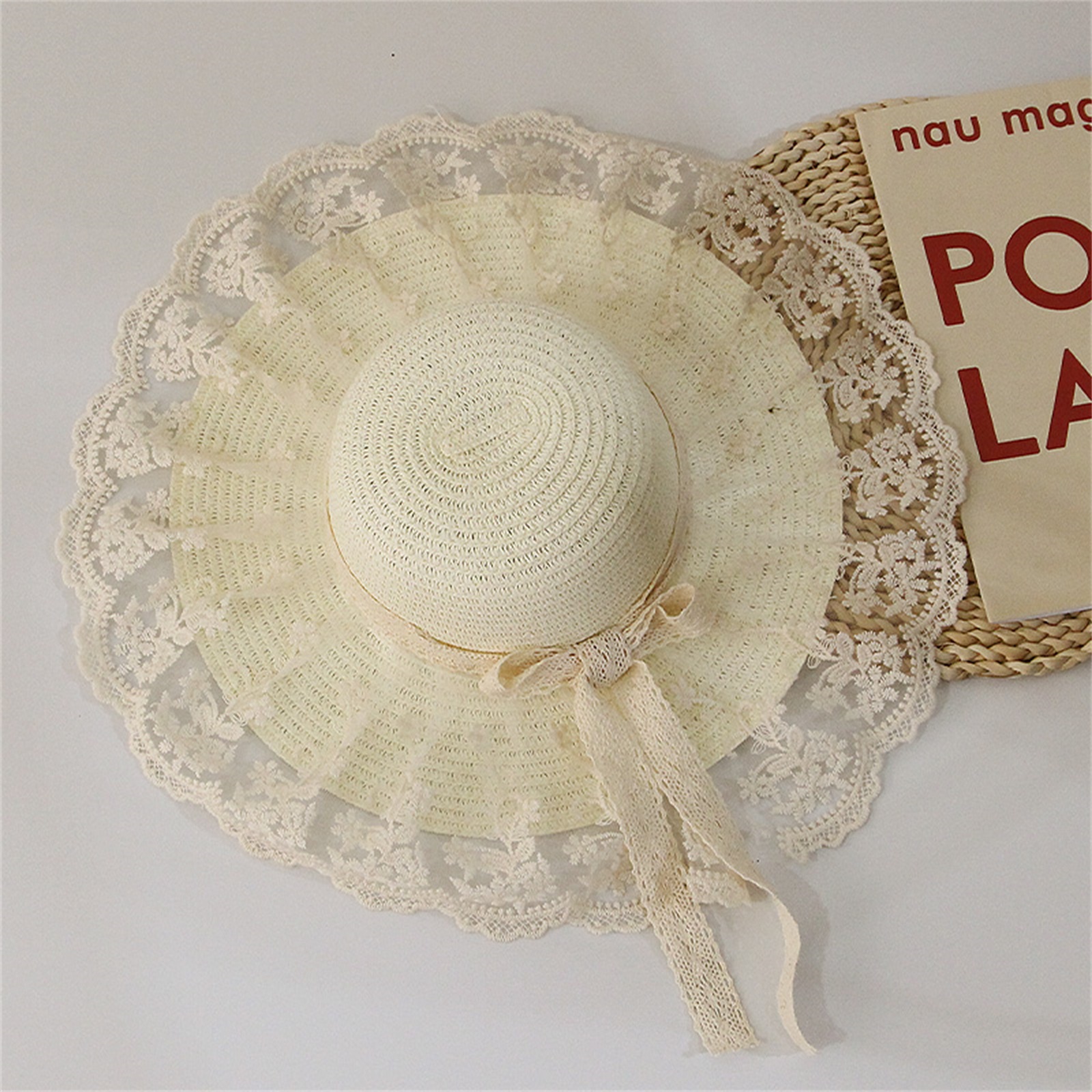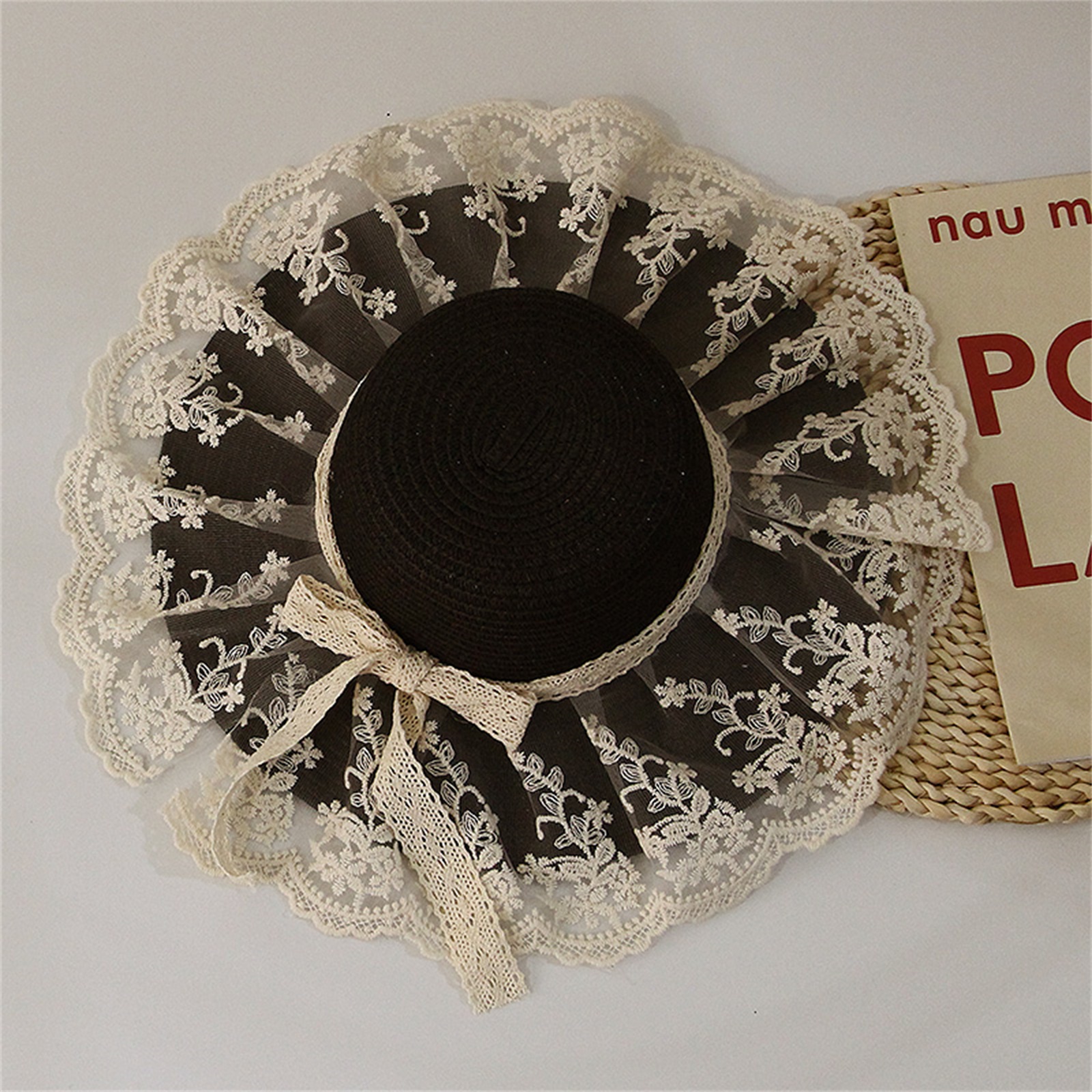 Описание: Уличная Солнцезащитная шляпа для маленьких девочек, кружевная вышивка, украшение в виде банта, высокий Топ с широкими полями, защита от ультрафиолета