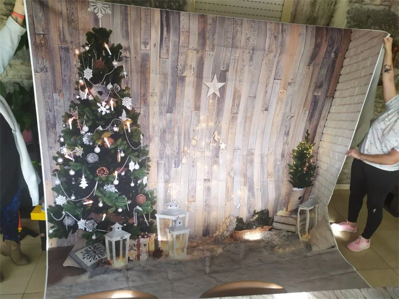 Фон для фотосъемки с изображением рождественской елки звезды детской семьи