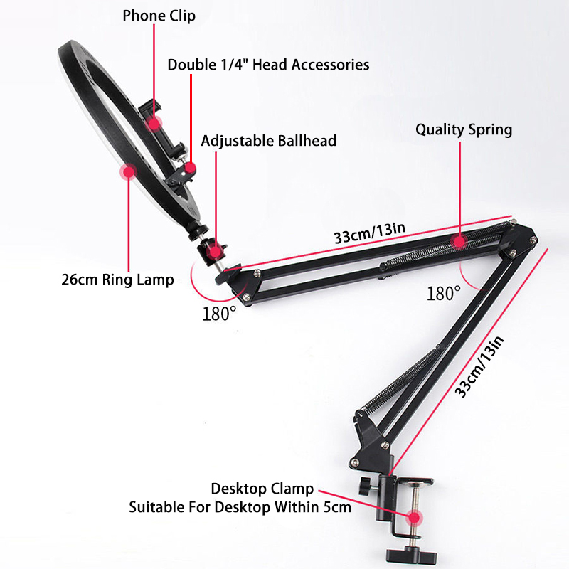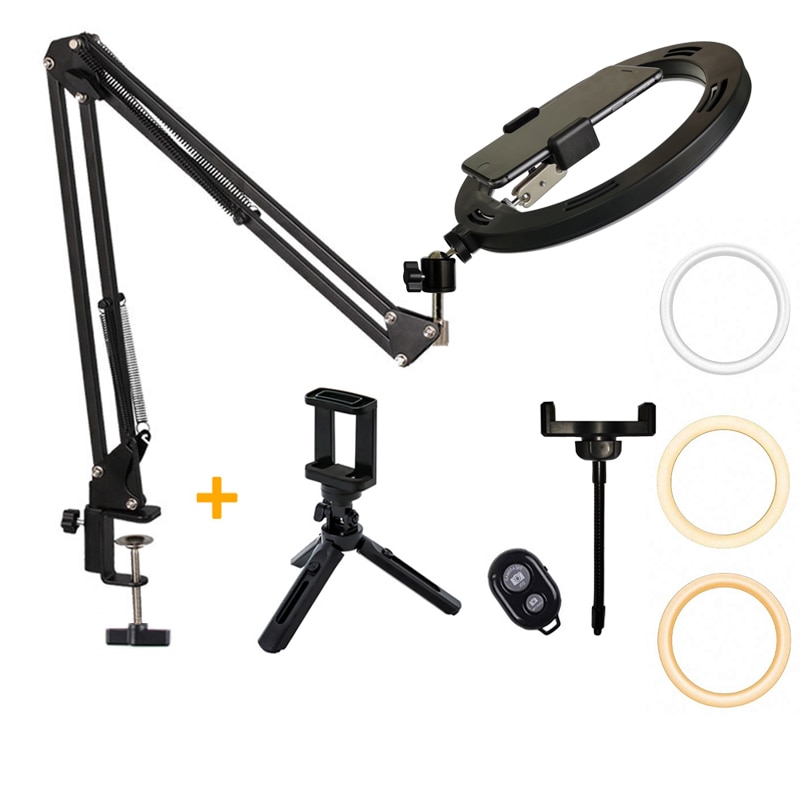 Set 6 Overhead Tripod+26cm Ring Light+Mini Tripod+Bluetooth Control