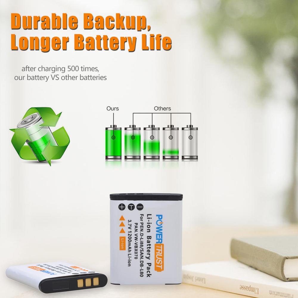 PowerTrust D-LI88 Аккумулятор и зарядное устройство для камеры DLI88 DBL80 для Sanyo Xacti DMX-CG11 VPC-CG10 VPC-CG102 VPC-CG20 VPC-CS1 VPC-GH2 VPC-X1200