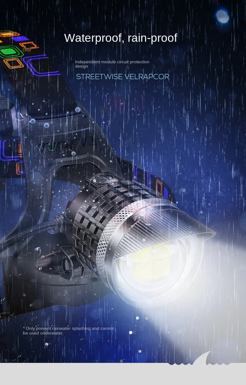 • Водонепроницаемая конструкция:Фара спроектирована так, чтобы быть водонепроницаемой, гарантируя, что она может выдерживать суровые погодные условия и использоваться во всех типах сред.